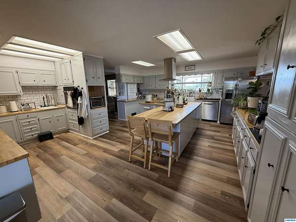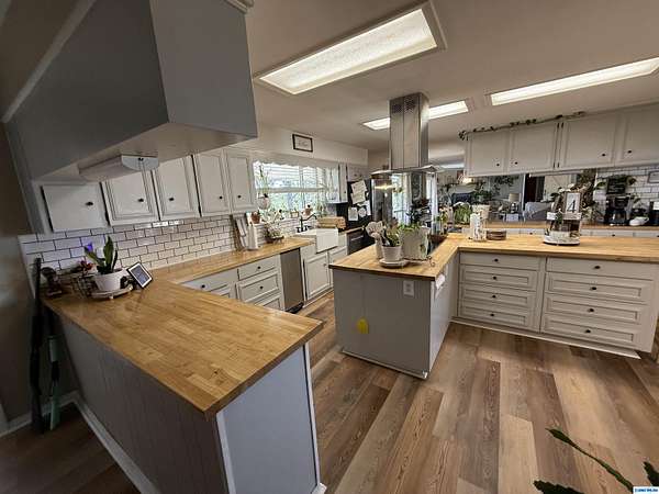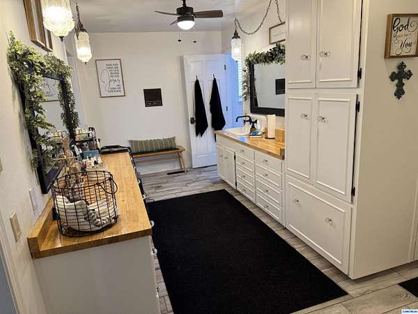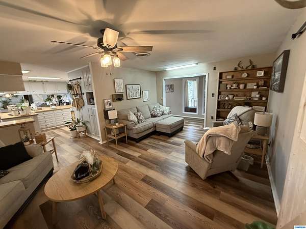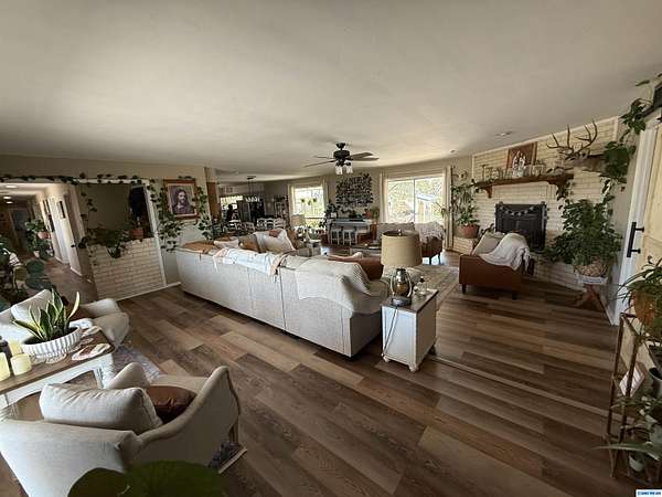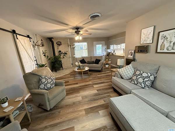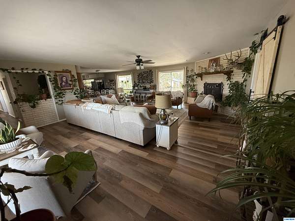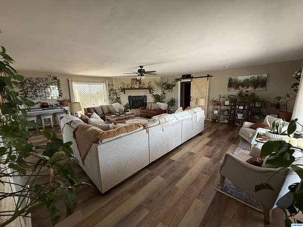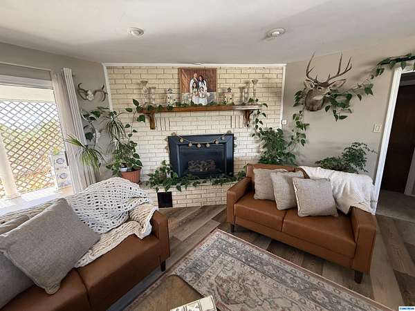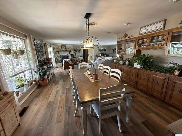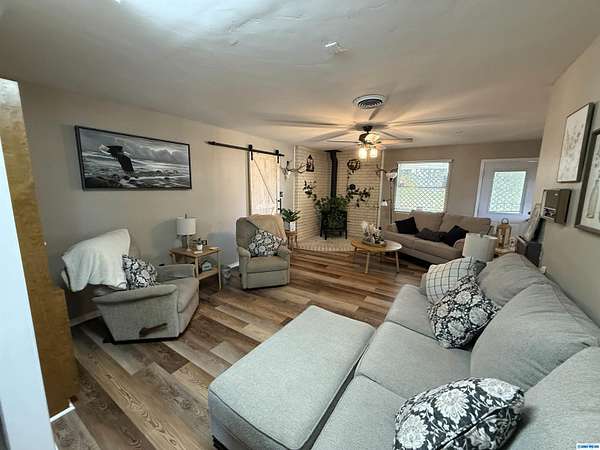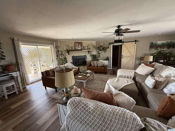 Beautifully remodeled ranch-style home just minutes from town, designed with comfort, style, and practicality in mind. This expansive 4-bedroom, 3.5-bath home features two separate living areas-one with a fireplace and the other with a woodstove-adding a warm and welcoming touch for the cooler seasons. The impressive chef's kitchen is equipped with high-end finishes and thoughtful details, perfect for both everyday use and entertaining. The primary suite offers a luxurious retreat with an oversized bathroom featuring double vanities, a separate shower, and an exceptionally large walk-in closet. Ample closet and storage space can be found throughout the home. Sitting on over 1.5 acres, the property includes a two-car garage, generous outdoor living areas, and an outdoor cooking space ideal for gatherings. Enjoy panoramic mountain views from the spacious covered porches in the front and back-perfect for peaceful mornings or evening sunsets.