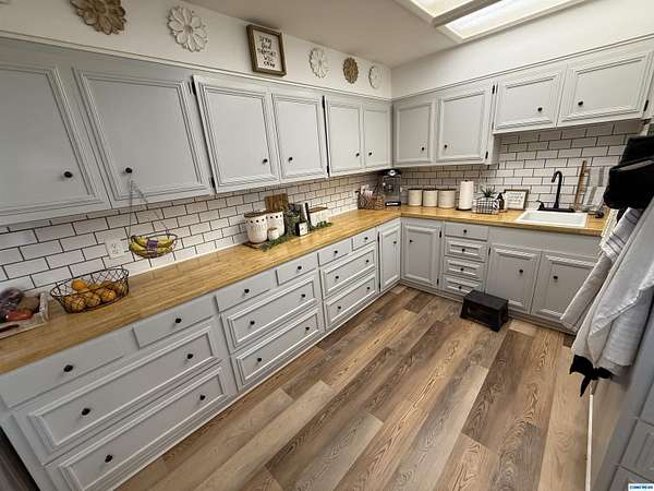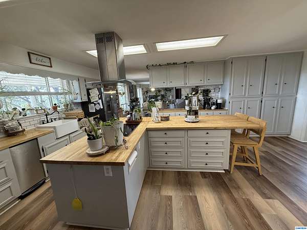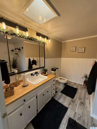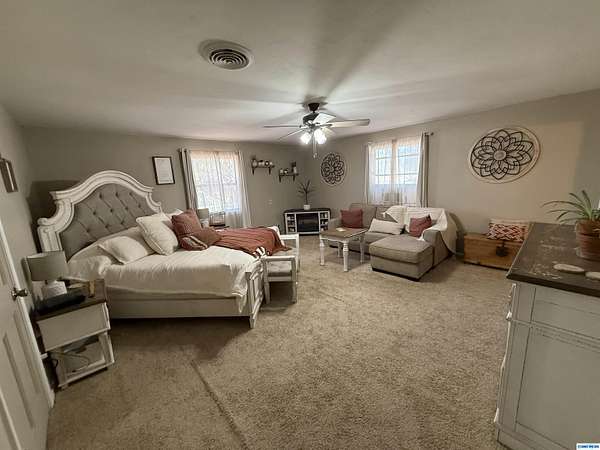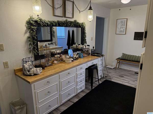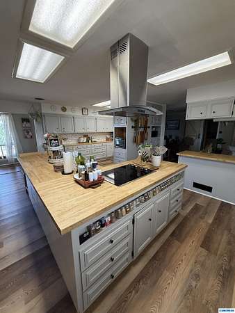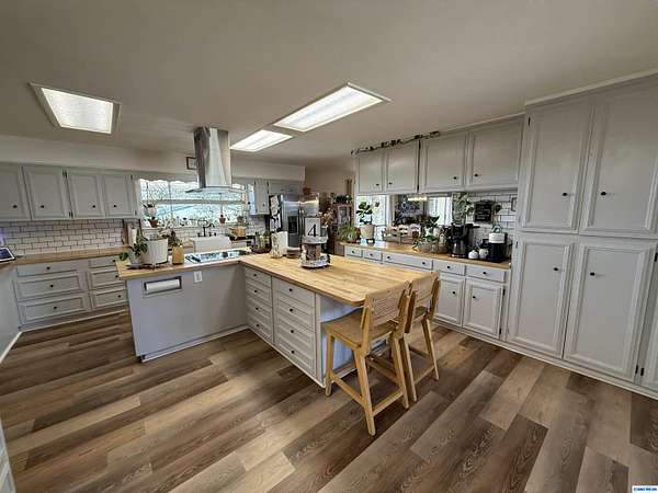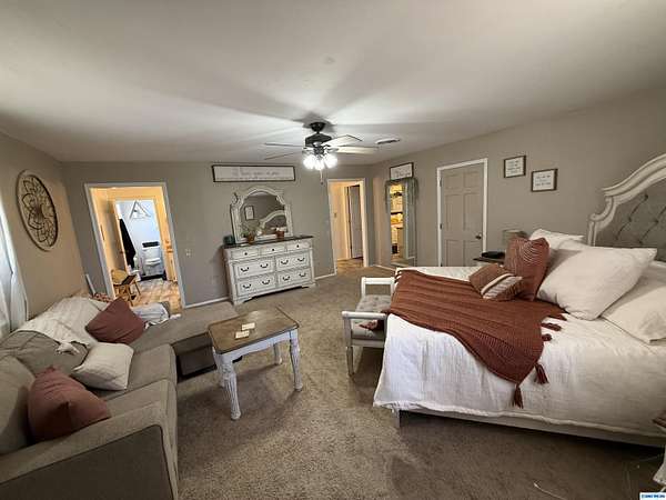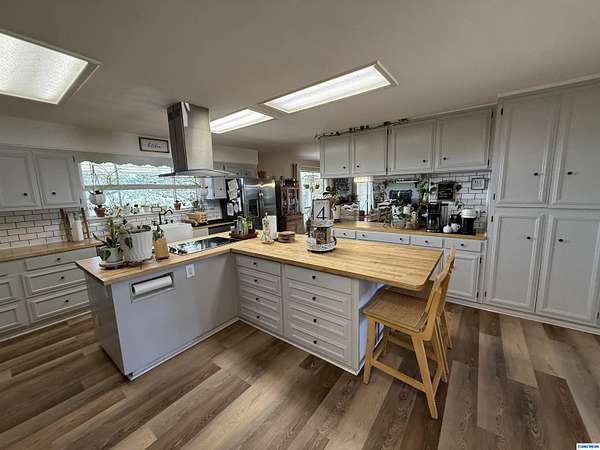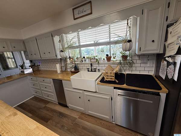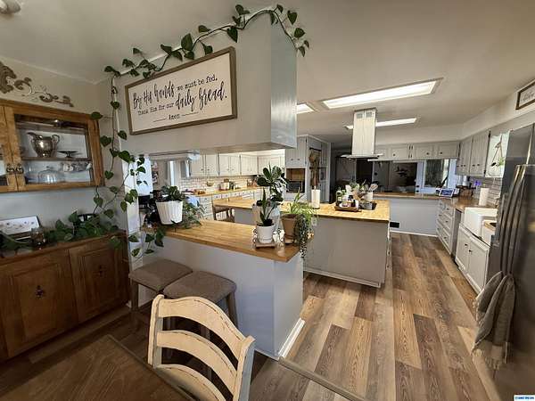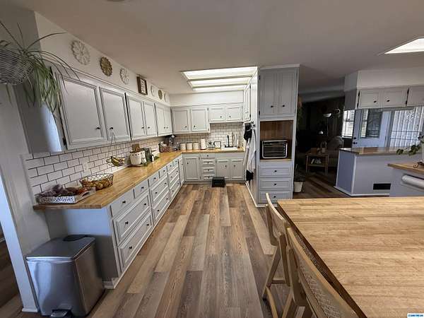 Beautifully remodeled ranch-style home just minutes from town, designed with comfort, style, and practicality in mind. This expansive 4-bedroom, 3.5-bath home features two separate living areas-one with a fireplace and the other with a woodstove-adding a warm and welcoming touch for the cooler seasons. The impressive chef's kitchen is equipped with high-end finishes and thoughtful details, perfect for both everyday use and entertaining. The primary suite offers a luxurious retreat with an oversized bathroom featuring double vanities, a separate shower, and an exceptionally large walk-in closet. Ample closet and storage space can be found throughout the home. Sitting on over 1.5 acres, the property includes a two-car garage, generous outdoor living areas, and an outdoor cooking space ideal for gatherings. Enjoy panoramic mountain views from the spacious covered porches in the front and back-perfect for peaceful mornings or evening sunsets.