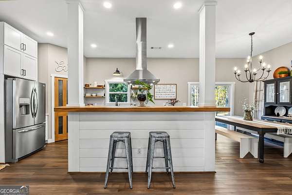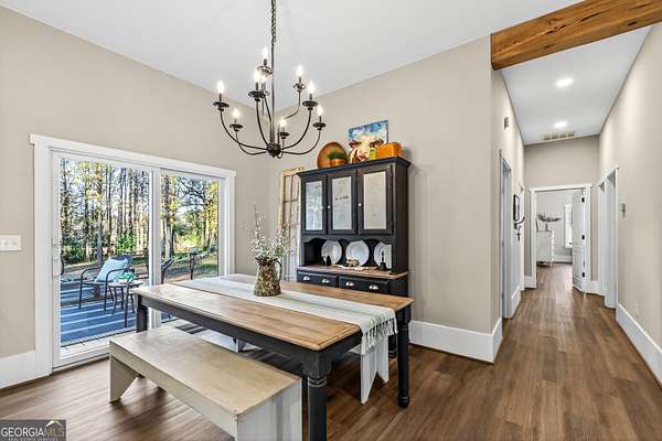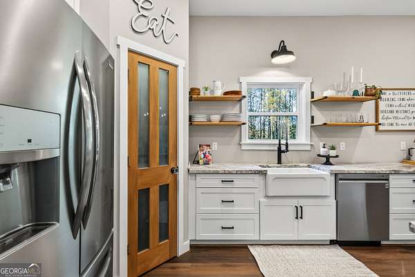 *Open House: Saturday 12/6 10:00am-12:00pm.* Welcome to your Monroe getaway! This beautiful ranch home sits on 2 acres of serene land and includes a second residence, a 24x40 pole barn with a dedicated storage room - a rare find with endless possibilities! Step up to the charming full-length front porch, perfect for relaxing in the morning with a cup of coffee. Inside the main residence, you're greeted by an open-concept living room and kitchen. The living room is bright, spacious, and features a stunning brick fireplace, creating a warm and inviting atmosphere. The kitchen is truly a chef's dream-equipped with stainless steel appliances, a farmhouse sink, breakfast bar, and an eat-in dining area. Natural light fills the space, making it the heart of the home. Down the hall, you'll find the primary suite, filled with natural light and plenty of space to make it your own. The primary bathroom offers double vanities and a large tiled walk-in shower. Two additional spacious bedrooms and a full hallway bathroom complete the main home. You'll also find a convenient laundry room in the hallway, perfectly positioned for easy access. Off the dining area, step outside to a back patio, ideal for relaxing. The main residence also includes a carport for added convenience. But it doesn't stop there! This property also includes a second residence-an adorable 896 sq ft home with everything you need. Step inside to a cozy living room with a fireplace that flows into the beautifully designed kitchen. Off the living room is a spacious bedroom, a full bathroom in the hallway, and a large walk-in closet. The kitchen also connects to a laundry room and pantry, offering excellent storage and functionality. This home also features its own carport. Outside, enjoy 2 acres of open, usable land, complete with a 24x40 pole barn-perfect for storage, a workshop, hobbies, or additional equipment. Don't miss this incredible opportunity to own two beautiful homes on acreage in Monroe! Properties like this are rare-come see all the space, charm, and versatility this one has to offer.