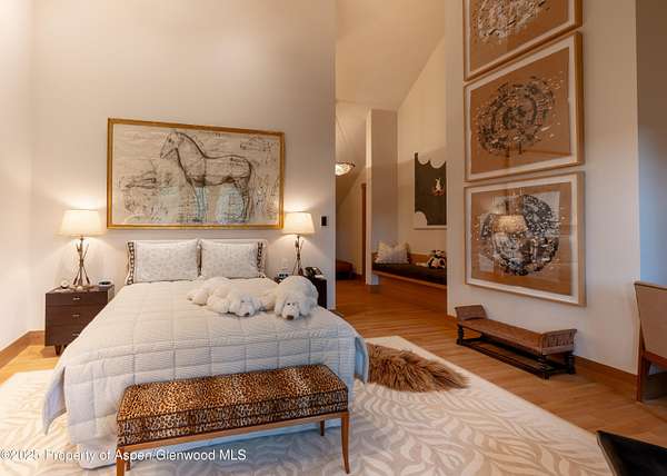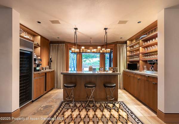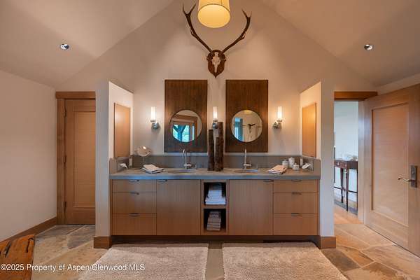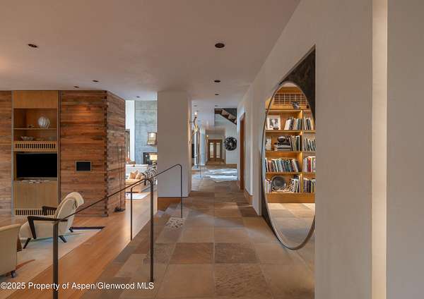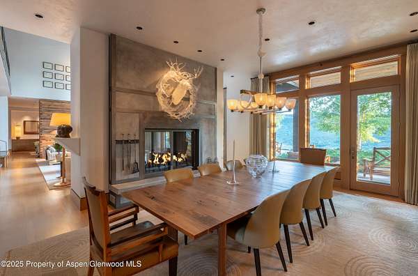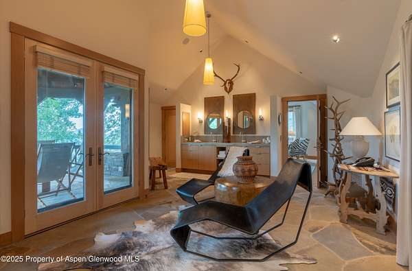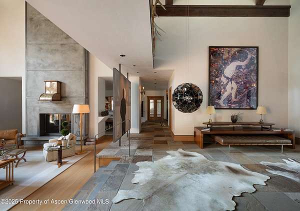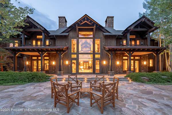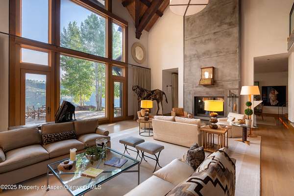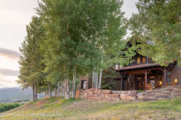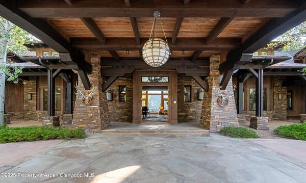 Set along a sun-drenched ridgeline with panoramic views of the Woody Creek Valley is a rare legacy estate that embodies the spirit of Aspen's rustic elegance. Designed by Poss Architecture- the five bedroom mountain retreat evokes the timeless character of alpine lodges, blending elegance with craftsmanship. Thoughtfully placed windows frame the surrounding landscape, while warm, handcrafted finishes create a sense of comfortable luxury. The main residence is anchored by massive timber beams, Telluride blend stone, and a striking mix of gabled and Dutch hip roofs that root the home in its natural surroundings. Upon entry through the grand porte-cochere, guests are welcomed into a great room filled with light and views. A main level primary suite is a private oasis on the east side of the home with a spa like bath, dressing room supplied with closed wood cabinetry for a clean, elegant look. Other features on this floor are a custom library, sitting room, formal dining and chef ready kitchen with a breakfast nook and access to the spacious outdoor terrace. The additional four bedrooms are upstairs, with all rooms above grade, apart from the custom wine room and storage on the lower level. The estate unfolds across 20 acres with multiple structures, including a beautifully designed three-stall barn with an attached one bedroom caretaker unit. Unified by a consistent palette and architectural vision, the property forms a cohesive legacy home of a rare quality and character. A true sanctuary in Woody Creek, just minutes from Aspen.