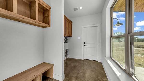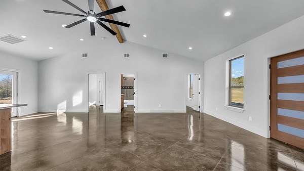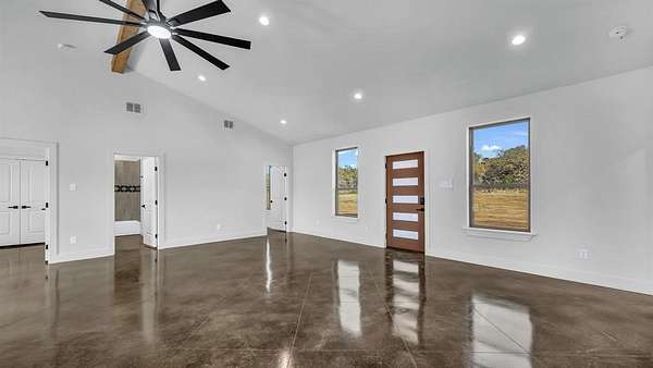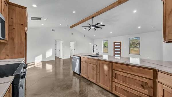 Move In Ready! Ask about Builder incentives! Nestled on 2 picturesque acres in Parker County, this stunning barndo perfectly blends modern living with charming country vibes. As you step inside, you'll be greeted by stained concrete flooring that flows seamlessly throughout the open-concept living, dining, & kitchen, creating an inviting space perfect for entertaining & everyday living. You'll be captivated by the stunning Knotty Alder Custom Cabinets and a large island with quartz countertops that make the kitchen a true centerpiece. Enjoy cooking with top-of-the-line stainless steel appliances! The master ensuite boasts dual vanities, a walk-in shower, & an impressive closet. The builder has invested in high-quality details such as spray foam insulation, expansive porch with tongue & grove ceiling, oversized garage, and more. Embrace the freedom of country living with NO city taxes, water bill, or HOA fees, allowing you to truly enjoy your space. Bring your beloved horses & other farm animals to this idyllic setting, where the possibilities are endless! Step outside to discover expansive back porch that spans almost the full length of the home, ideal for relaxing while soaking in the serene surroundings & breathtaking views. Location is everything, & this property doesn't disappoint. You'll find yourself just 25 minutes from Weatherford, 12 minutes to Mineral Wells, and only 1 hour to Fort Worth. Txt keyword RANCH3 to 88000 for virtual tour link & more.