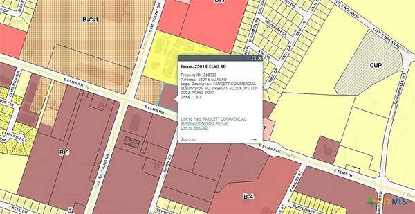 Unlock the development potential of this 2.097-acre unimproved commercial parcel, ideally located along the high-traffic corridor of E Elms Road in Killeen, Texas. Zoned B-5, this property offers exceptional flexibility for a wide variety of commercial uses, including retail, office, restaurant, medical, automotive, and service businesses. Located in a thriving area of south Killeen, this parcel is surrounded by rapid residential and commercial development, making it ideal for businesses looking to capitalize on the city's ongoing growth. With nearly 2.1 acres of development-ready land, strong visibility, and flexible zoning, this site is a standout opportunity for investors, developers, or end users. Property Highlights: Topography: Level and ready for construction Frontage: Excellent visibility with strong daily traffic on E Elms Road Utilities: water, sewer and electric available at site Access: Minutes from I-14, SH-195, Stan Schlueter Loop, and major residential developments Nearby: Close proximity to H-E-B, medical centers, schools, main shopping district and expanding residential neighborhoods