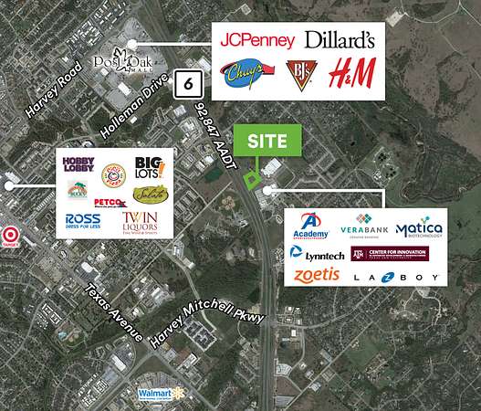 - Central to the entire Bryan-College Station region, Texas A&M University, Post Oak Mall, Baylor Scott & White, and St. Joseph healthcare.