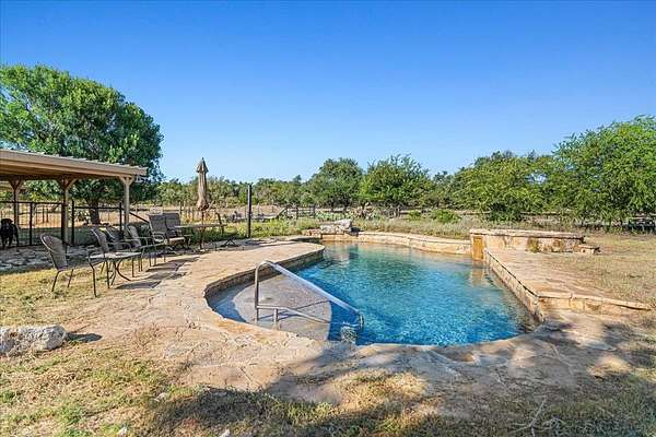 Come check out this awesome 3-bedroom, 2-bathroom home on 10 fully fenced acres! This rental property has everything you need for country living, including a horse barn, chicken coop, goat shed, and even a saltwater swimming pool. It's a great place to enjoy peace and quiet, but it's also close to Wimberley, Austin, and San Antonio. You get the best of both worlds - country life with easy access to the city!