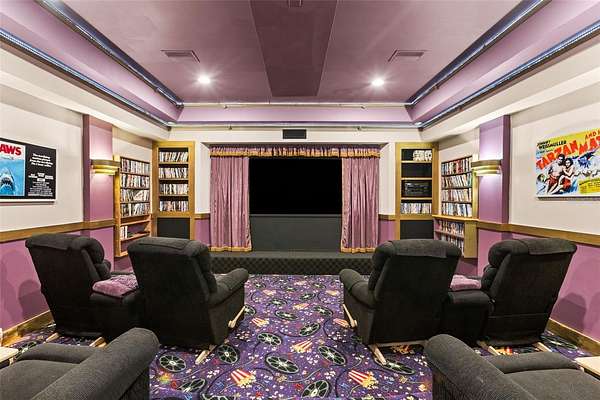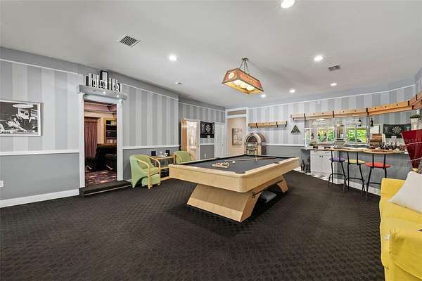The entertainment space continues with a vast 23 x 28-foot GAME ROOM featuring a half bath and direct access to a covered rear patio, where French doors invite indoor-outdoor living. This game room leads seamlessly into a dedicated THEATER ROOM for the ultimate movie nights or sports viewing experience--perfect for all kinds of entertainment.