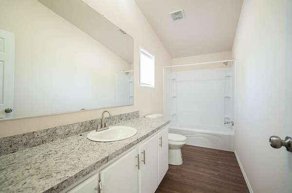 - Linen Closet, Open Floorplan, Primary Downstairs, Shower/Tub Combo, Vaulted Ceiling(s), Walk-In Closet(s)