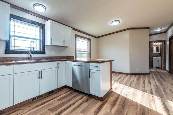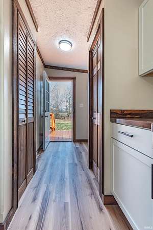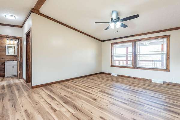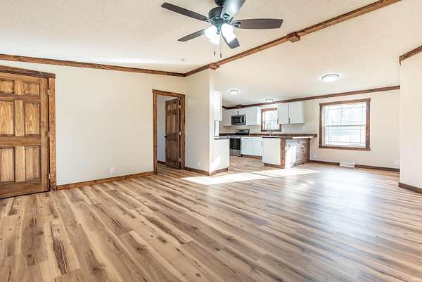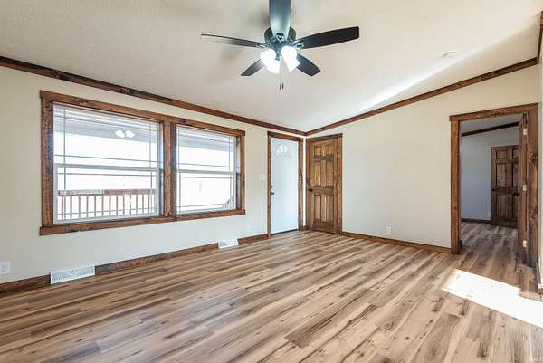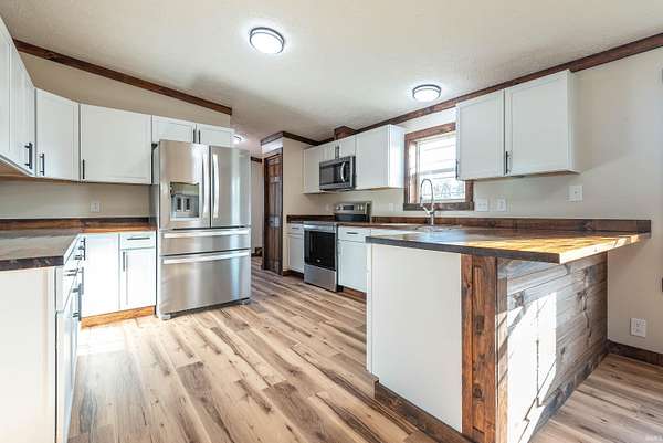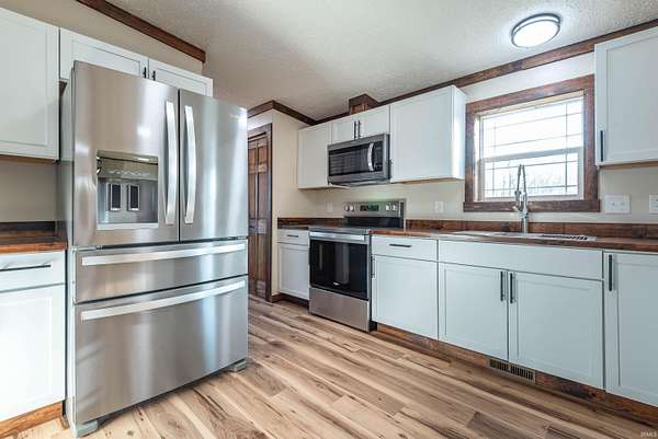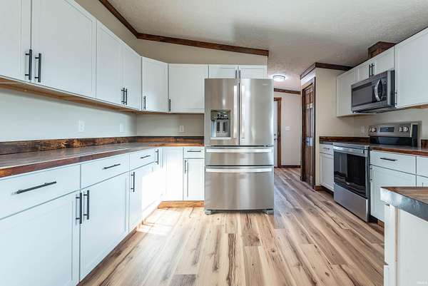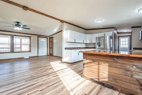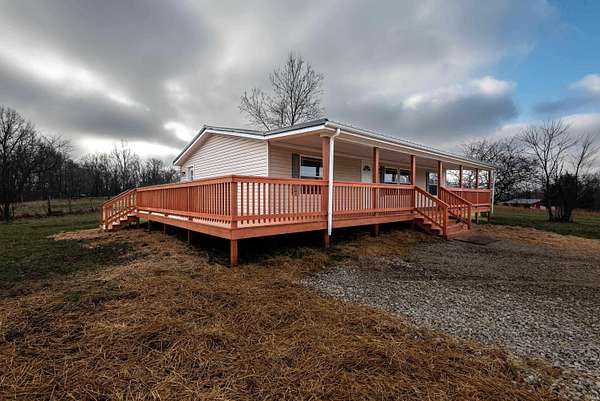 Country living that's hard to resist! This beautifully remodeled 3-bedroom, 2-bath home sits on 4 1/4 acres and blends rustic charm with modern upgrades throughout. Recent improvements include bull-nosed corners, 6-inch walls/windows, vinyl plank flooring, new cabinetry, 6-panel wood doors, wood trim, new updated bathrooms, butcher-block countertops, fresh paint, and new stainless-steel appliances. A durable metal roof crowns the home, while the HVAC system and hot water heater have been replaced within the last five years. Relax on the impressive 52-foot covered front porch and enjoy views that truly deliver. A 30-foot side deck overlooks fruit and walnut trees, open pasture, and a peaceful pond. The front pastures offer endless possibilities--ideal for gardening, a hay field, or hobby farming. Completing the property is a massive barn, perfect for storage, projects, or livestock. The second barn has a horse stall and room for a chicken coop. A rare opportunity to enjoy modern comfort with wide-open country space. Please take shoes off or put on the booties that are provided.
