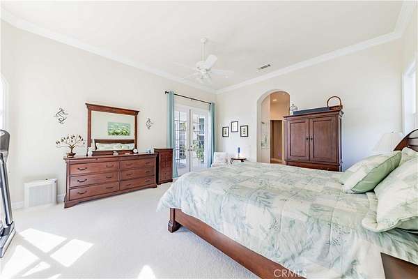 - Built-In Features, Ceiling Fan(s), Coffered Ceiling(s), Crown Molding, French Doors, High Ceilings