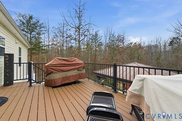 Welcome to 2503 Bucknell Lane in the sought-after Clifton neighborhood -- a stunning craftsman style home that combines SOLAR, comfort, modern upgrades, and thoughtful design. This 3-bedroom, 2.5 bathroom residence offers 1,800 square feet of open living space and sits on a 1.7+ acre lot in a peaceful, low-traffic cul-de-sac. From the moment you enter, you'll be impressed by the natural light and open floor plan that make this home feel spacious and inviting. Enjoy the plantation shutters, cozy fireplace and a kitchen with upgraded finishes like granite countertops, travertine backsplash, stainless farmhouse sink, under cabinet lighting and high-end stainless appliances. The attached two-car garage is climate controlled as of 2025. The home features a highly desirable layout with the Primary Bedroom on the main floor, which includes a walk-in closet and an ensuite bathroom featuring a tiled walk-in shower with dual shower heads. Upstairs you'll find 2 additional bedrooms with walk-in closets and a recently updated bath offering flexibility for guests, family, or a home office. Step outside to your private oasis with a Trex composite deck overlooking a 540 SF stone patio with 10x10 gazebo, complementing the property's well-established landscaping that's perfect for entertaining or relaxing in privacy. The custom-built garden shed and walk-in garden are a gardener's delight. Solar installed in 2020 - system will be paid off by sellers at closing and buyers will own the system. Sellers can provide records of electric bills. New HVAC in 2024, new gas range 2024, new dishwasher 2023, new Anderson storm door in 2025, new luxury vinyl flooring installed in largest upstairs bedroom and hallway in 2025. The home has been exceptionally well maintained, showing pride of ownership throughout. Enjoy peace and quiet while 25 minutes to Short Pump Town Center, 15 minutes to Powhatan State Park, 5 minutes to the James River. Don't miss the opportunity to make this your home.