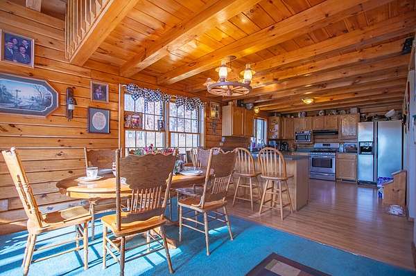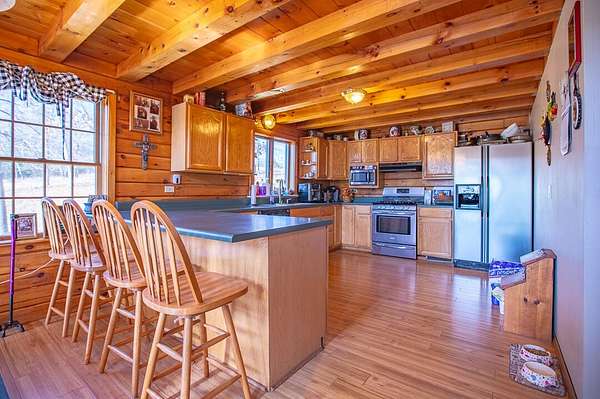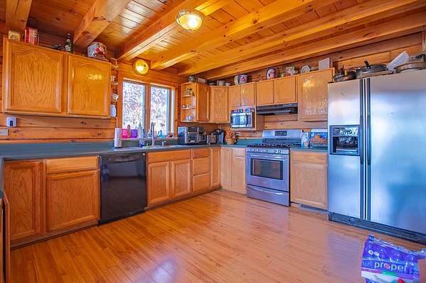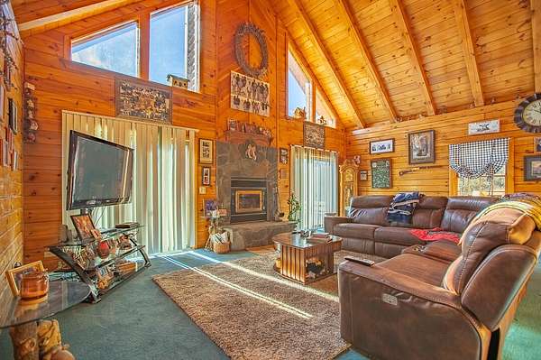 This beautiful 3 bedroom, 3 bathroom log cabin is one of a kind! The main level has a stone fireplace with glass doors and big windows on both sides. Imagine curling up in front of the glowing fireplace with a hot cup of coffee or cocoa on those chilly winter days. A main level deck runs the length of the home. Perfect for entertaining family and friends or just relaxing and enjoying the views. The loft features the master bedroom and bath with sitting area just off the stairs giving you more space and privacy for some much needed time to yourself. The large open downstairs includes a secondary family room and walk out to the yard, making it a great space to enjoy time with guests. And the house is just the beginning. Outside is fenced with a cattle guard at the entrance, a 2 car detached garage and large outbuildings. There are 100 acres for you to do with as you like. The pasture is an excellent spot for livestock to graze. There is even a corral area all ready for you! A spring runs on the property all year round so ponds won't freeze. The pond provides ample water to livestock along with the native wildlife. This property borders nearly 1000 acres of government owned land, giving you access for: hunting, hiking, mushroom hunting, etc. This is truly an amazing property and the possibilities are endless!