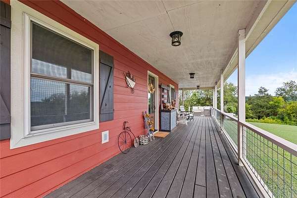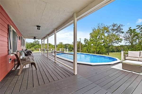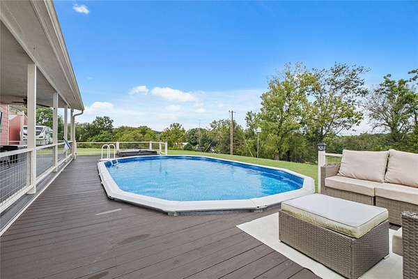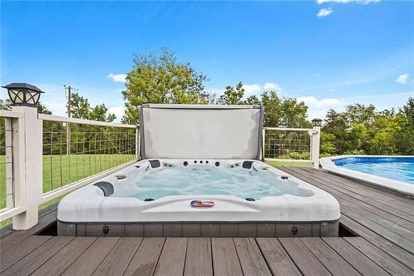 Custom-built home, shop, hobby farm with over 4 acres mol! This beautiful home offers 3 bedrooms, 2.5 bathrooms, a dining area and second space for additional living/office area/hobby room (lower level), Hardi-board plank outside w/ 3/4 wrap-around deck for outdoor enjoyment/entertainment w/ above ground decked pool & hot tub. The primary suite has a walk-in closet with claw foot soaker tub/walk-in shower. Real bamboo flooring throughout (deep wood touch), wood stove heat in addition to HVAC system (all electric), kitchen is spacious/quaint w/a view to enjoy while eating/cooking, steel countertops, the refrigerator is an option with an acceptable offer. Let's talk about the extra's outside! Outside offers a shop (36' wide, 40' long, 12' high) with concrete floors, elect, RV parking area, raised flower/gardening beds with water spicket, already set-up for livestock/paddocks, this property has it all! Welcome to Lake Francis Road, close everything NWA/NEO! 10 mi. Siloam, 30 to Fayetteville, 45 to Bentonville!