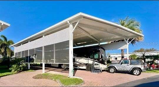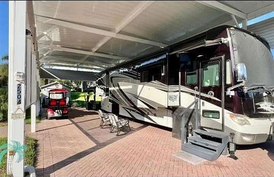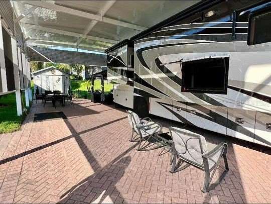 50 Amp, Full Hook lot, 64' x 24' paved area on the landscaped 90' x 40' lot with a 64' x 24' Aluminum Port built in 2023 with 6" x 6" posts and solar screening.