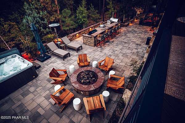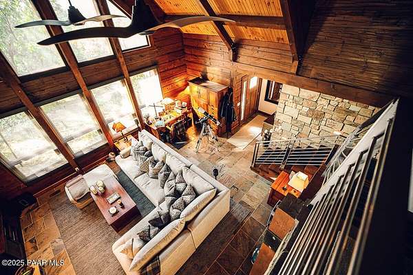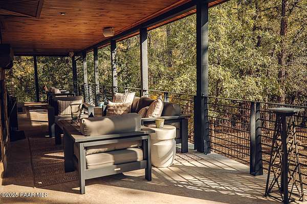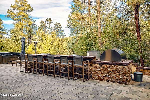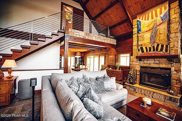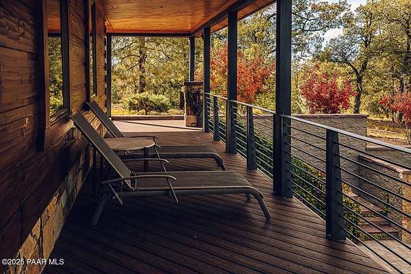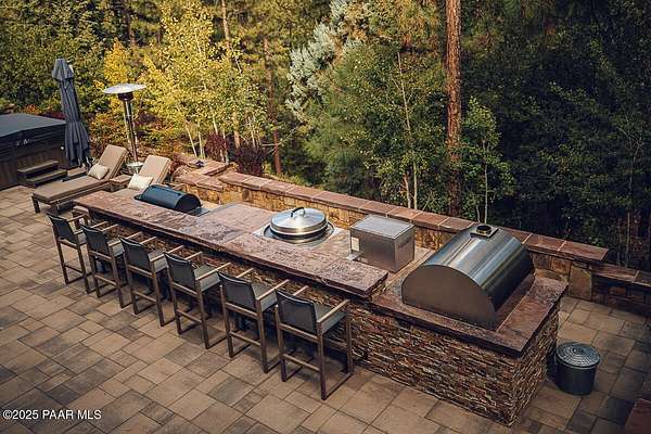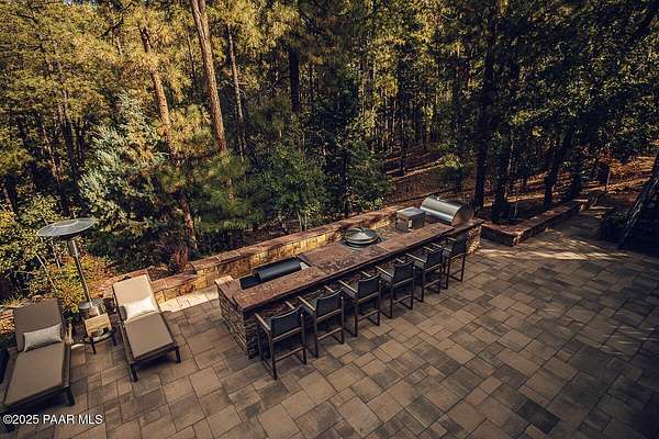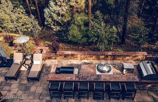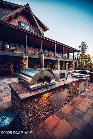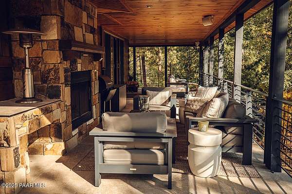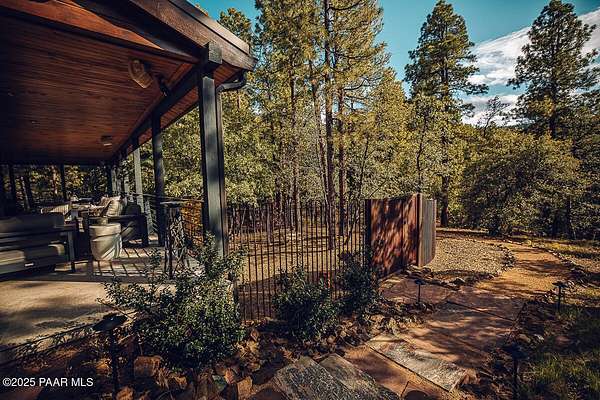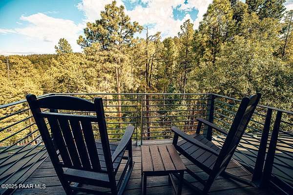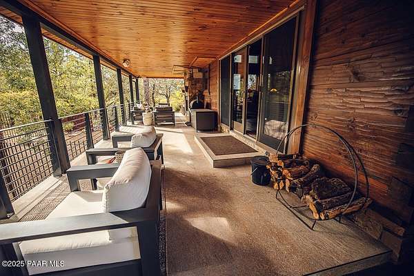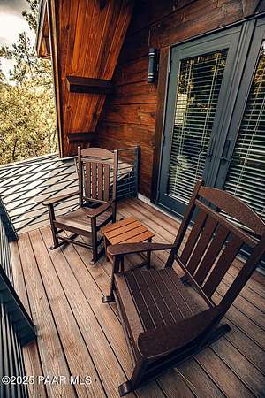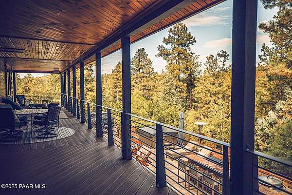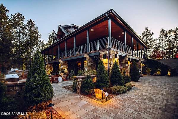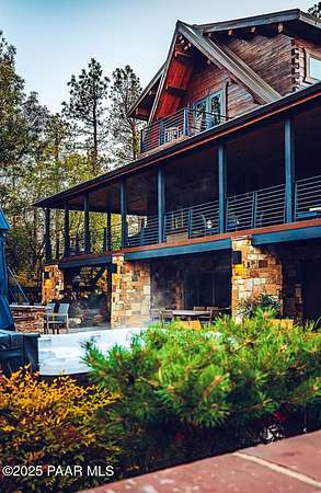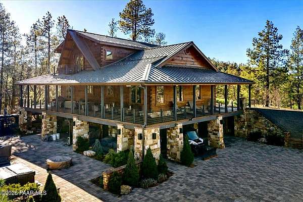 Ultra-Luxury Mountain Estate located in Prescott National Forest BorderA once-in-a-generation offering: a trophy-level mountain lodge estate at 6,700 ft elevation, blending total privacy, elite architecture, and direct National Forest access--just minutes from downtown Prescott.Privately gated and bordered by Prescott National Forest, this irreplaceable compound benefits from a rare forest-line variance allowing construction directly adjacent to protected land--guaranteeing unspoiled vistas and enduring seclusion.Crafted from hand-hewn pine logs by Kuhn Brothers Log Homes (now Timberhaven), the residence showcases artisan mountain architecture: exposed beam ceilings, tongue-and-groove finishes, solid wood doors, and museum-quality detailing throughout.Interior Highlights: Radiant in-floor heating throughout home + garage 2 wood-burning fireplaces (Great Room + covered deck) Gas fireplaces in Game Room + outdoor lounge Control4 smart home automation Central vacuum system Certified Fire Wise by Groom Creek Fire Dept (2 miles away) Starlink internet (150-200 Mbps) for seamless remote livingThe chef's kitchen centers the home with Crown Point Cabinetry, handmade concrete countertops by artist Phil Bigelow, and pro-grade appliances. Recent upgrades: GE Cafe fridge/freezer (2025), Speed Queen washer/dryer (2025), GE Monogram dishwasher, tankless water heater.A 2023 reimagining of the lower level introduced a refined entertainment suite; all TVs upgraded (past 3 yrs) with 5.1 surround sound systems.Outdoor Living & Entertaining:Designed for elevated hosting and serene retreat: 22-ft custom BBQ kitchen: Traeger, EVO flat-top, Beefer, Fontana wood-fired pizza oven Sundance Optima Spa + gas fire pit Outdoor audio system on decks, yard, + telescope pad Covered wraparound decks w/ Trex + tongue-and-groove ceilings Custom steel railings (Prescott-fabricated) Stargazing pad for telescopes--dark sky brilliance 2023 AZ Landscape Award-winning design: Versa-Lok retaining walls, FX Luminaire architectural lighting (seasonally programmable), and a native-integrated hardscapeLand, Trails & Location: Wolf Creek flows through southern property line Private trail connects directly to Spruce Mountain Loop Trail #307 Spruce Mtn Lookout Tower visible from backyard Ideal for hiking, OHV, wildlife viewing, target shooting, and historical mining exploration Survey + topo analysis completed Sept 2025 Driveway widened with engineered drainage + culverts (Fall 2025) Well share + Volunteer Road Maintenance Agreement in placePrime Yet Secluded: 15 mins to Downtown Prescott (7 miles) 11 mins to Goldwater Lake (3.7 miles) -- paddleboarding, kayaking, fishing, picnickingInsulated garage doors enable year-round use; rusted steel utility enclosure + custom plasma-cut dog run add visual charm and function.Turnkey Offering:Home sold fully furnished with designer-curated pieces from Restoration Hardware, Crate & Barrel, and more--luxury living from day one.An Unmatched LifestyleWhether it's monsoon storms rolling over the forest, snowfall beside a crackling fire, stargazing in absolute silence, or hiking to panoramic granite ridgelines--this is not a cabin. This is a private mountain compound: protected, intentional, and impossible to replicate.