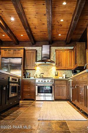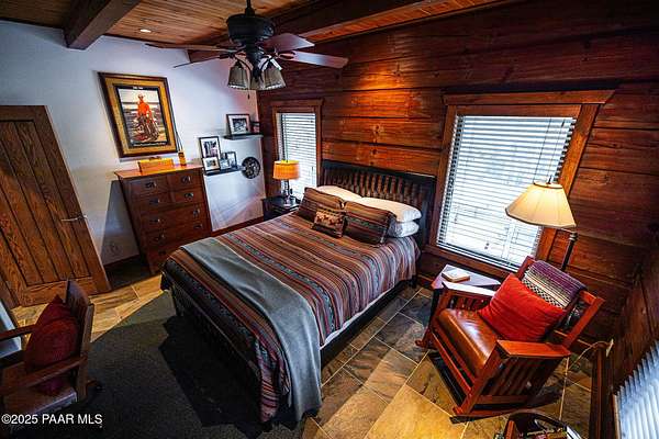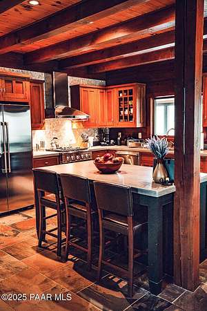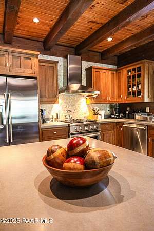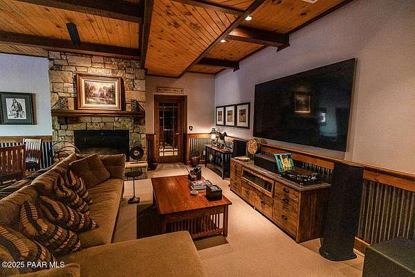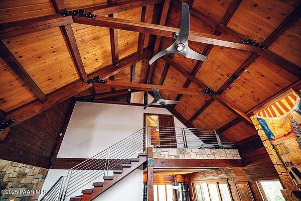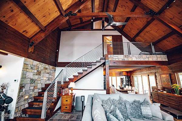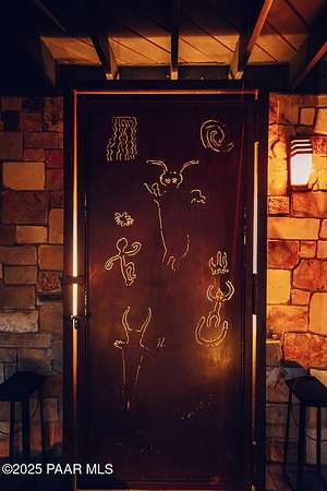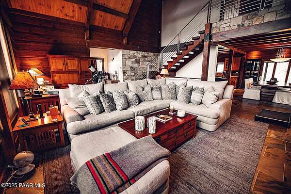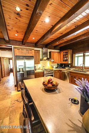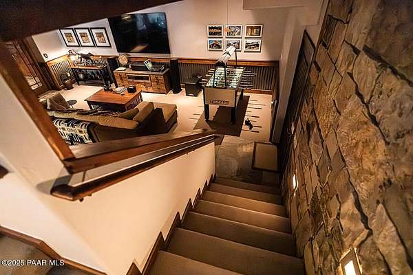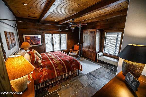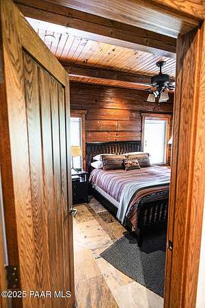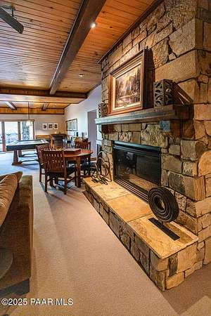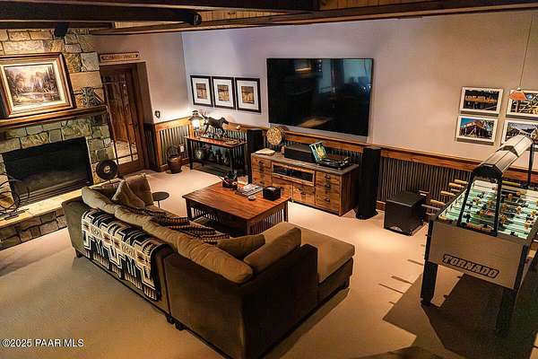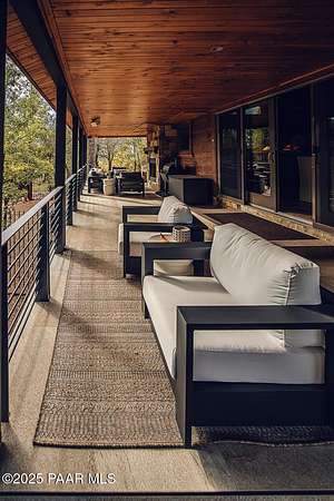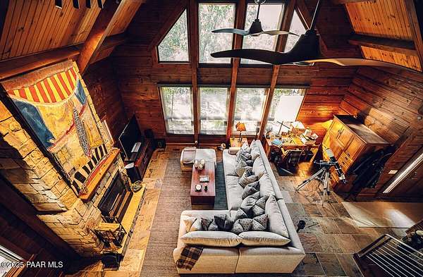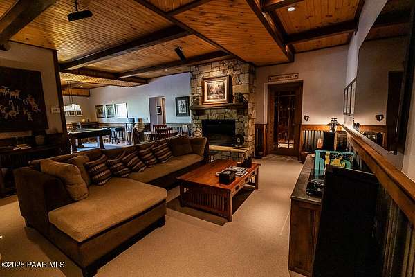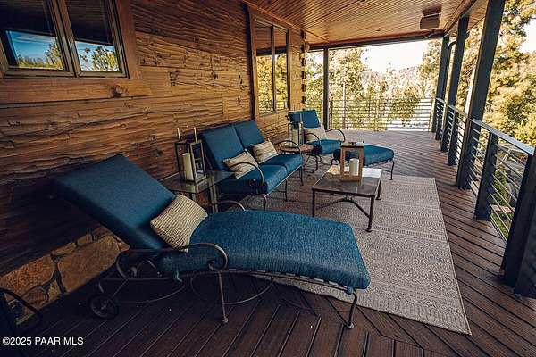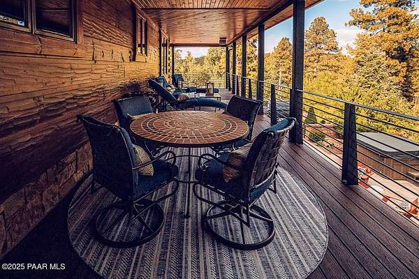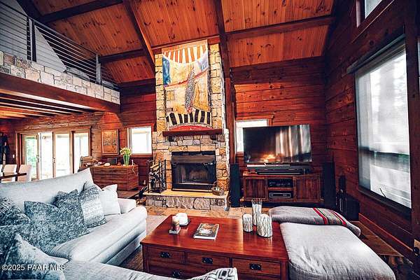 Ultra-Luxury Mountain Estate located in Prescott National Forest BorderA once-in-a-generation offering: a trophy-level mountain lodge estate at 6,700 ft elevation, blending total privacy, elite architecture, and direct National Forest access--just minutes from downtown Prescott.Privately gated and bordered by Prescott National Forest, this irreplaceable compound benefits from a rare forest-line variance allowing construction directly adjacent to protected land--guaranteeing unspoiled vistas and enduring seclusion.Crafted from hand-hewn pine logs by Kuhn Brothers Log Homes (now Timberhaven), the residence showcases artisan mountain architecture: exposed beam ceilings, tongue-and-groove finishes, solid wood doors, and museum-quality detailing throughout.Interior Highlights: Radiant in-floor heating throughout home + garage 2 wood-burning fireplaces (Great Room + covered deck) Gas fireplaces in Game Room + outdoor lounge Control4 smart home automation Central vacuum system Certified Fire Wise by Groom Creek Fire Dept (2 miles away) Starlink internet (150-200 Mbps) for seamless remote livingThe chef's kitchen centers the home with Crown Point Cabinetry, handmade concrete countertops by artist Phil Bigelow, and pro-grade appliances. Recent upgrades: GE Cafe fridge/freezer (2025), Speed Queen washer/dryer (2025), GE Monogram dishwasher, tankless water heater.A 2023 reimagining of the lower level introduced a refined entertainment suite; all TVs upgraded (past 3 yrs) with 5.1 surround sound systems.Outdoor Living & Entertaining:Designed for elevated hosting and serene retreat: 22-ft custom BBQ kitchen: Traeger, EVO flat-top, Beefer, Fontana wood-fired pizza oven Sundance Optima Spa + gas fire pit Outdoor audio system on decks, yard, + telescope pad Covered wraparound decks w/ Trex + tongue-and-groove ceilings Custom steel railings (Prescott-fabricated) Stargazing pad for telescopes--dark sky brilliance 2023 AZ Landscape Award-winning design: Versa-Lok retaining walls, FX Luminaire architectural lighting (seasonally programmable), and a native-integrated hardscapeLand, Trails & Location: Wolf Creek flows through southern property line Private trail connects directly to Spruce Mountain Loop Trail #307 Spruce Mtn Lookout Tower visible from backyard Ideal for hiking, OHV, wildlife viewing, target shooting, and historical mining exploration Survey + topo analysis completed Sept 2025 Driveway widened with engineered drainage + culverts (Fall 2025) Well share + Volunteer Road Maintenance Agreement in placePrime Yet Secluded: 15 mins to Downtown Prescott (7 miles) 11 mins to Goldwater Lake (3.7 miles) -- paddleboarding, kayaking, fishing, picnickingInsulated garage doors enable year-round use; rusted steel utility enclosure + custom plasma-cut dog run add visual charm and function.Turnkey Offering:Home sold fully furnished with designer-curated pieces from Restoration Hardware, Crate & Barrel, and more--luxury living from day one.An Unmatched LifestyleWhether it's monsoon storms rolling over the forest, snowfall beside a crackling fire, stargazing in absolute silence, or hiking to panoramic granite ridgelines--this is not a cabin. This is a private mountain compound: protected, intentional, and impossible to replicate.