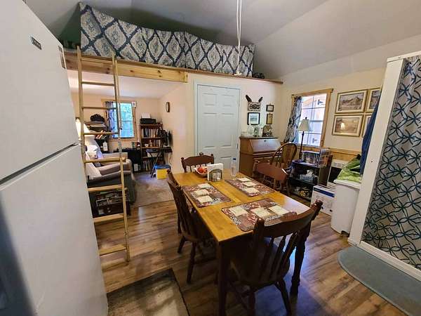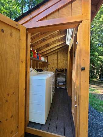 THIS PERFECT CABIN IN THE WOODS IS COMPACT BUT HAS IT ALL! FOR MONTHS THE INTERNET DESCRIPTION HAS INCORRECTLY SAID THE HOA WAS $175 A MONTH BUT IT IS ACTUALLY JUST $175 A YEAR! IF RUGGED MOUNTAIN LIVING IS YOR DREAM OR IF YOU JUST WANT A PRIVATE RECREATIONAL AREA FOR YOUR FAMILY THEN THIS LOCATION WITH NO TRAFFIC NOISE IS FOR YOU! HOME IS WELL INSULATED, HAS FULL ELECTRIC PLUS A 50 AMP RV PLUG FOR YOUR VISITORS AND HAS ALL WIRING HOOKUPS FOR YOUR GENERATOR IN CASE OF POWER OUTAGE. NEWER SEPTIC SYSTEM ALLOWS FOR YOU TO BUILD BIGGER LATER WITH NO ISSUES. DUAL FLUSH TOILET, SHOWER, INSTANT HOT WATER HEATER, FULL SIZE REFRIGERATOR, WASHER AND DRYER! KITCHENETTE HAS COUNTER, UNDER STORAGE AREA, OVERHEAD CABINETS, A KITCHEN SINK WITH WINDOW! MAIN FLOOR HAS ENOUGH SPACE FOR A SMALL DINING TABLE, RECLINERS OR LOVESEAT, TV AND DESK AREA.THERE IS A STURDY LADDER FOR CLIMBING TO THE TOP SPACE WHICH CAN BE USED FOR SLEEPING OR STORAGE.THERE IS A SEPERATE BEDROOM ON THE MAIN LEVEL WITH A CLOSING DOOR FOR PRIVACY. COMES WITH CELL BOOSTER FOR VERY GOOD CELL SERVICE! INTERNET IS VIA SATELLITE. THE LAUNDRY UNIT IS SEPERATE AND ATTACHED TO MAIN DWELLING AND EVEN HAS A BIG WASH TUB AND ALSO HAS BOTH SIDE AND FRONT DOORS TO LET THOSE COOL BREEZES BLOW WHEN DRYING CLOTHES. THE CISTERN HOLD 1275 GALLONS, IS VENTED AND HAS A GUAGE SO YOU KNOW WHEN TO REFILL. WATER DELIVERY IS AVAILABLE OR YOU CAN HAUL YOUR OWN. STUDY THE PICS AND YOU WILL SEE THAT IF YOU CUT SOME OF THE TREES, YOU WILL HAVE AN INCREDIBLE VIEW FACING THE PRISTINE TROUGH AREA. WHEN YOU ARE HERE, YOU ARE TRULY NESTLED IN THE WOODS SURROUNDED BY WILDLIFE! AS AN OWNER, YOU AND YOUR GUESTS CAN ALSO ENJOY THE BEAUTIFUL LARGE POND, PICNIC AREAS, OVERLOOK AREAS AND ACCESS TO THE RIVER WHICH ARE THE COMMON AREAS FOR OWNERS TO USE! LOCAL ATTREACTIONS AND EASY DRIVING DESTINATIONS INCLUDE FISHING, CAVERN, HORSEBACK RIDING, SKI RESORTS, GOLF, SENECA ROCKS, NATIONAL FOREST, 6 CINEMA THEATER, BOWLING, EXCELLENT RESTURANTS. FESTIVALS AND MORE! JUST 2 1/2 HRS FROM DC!