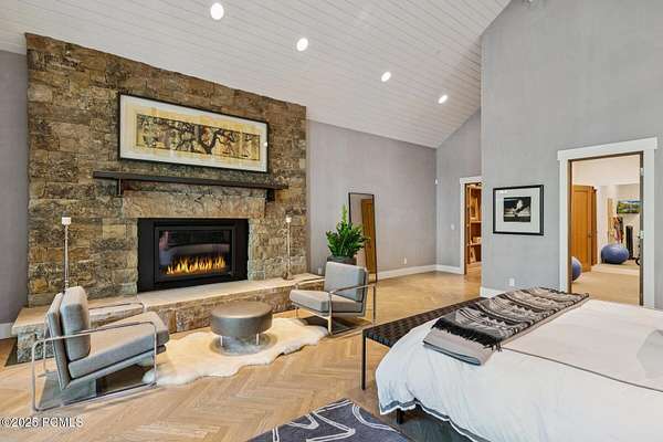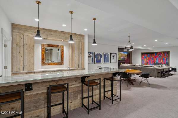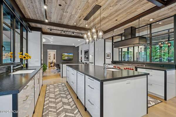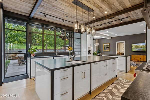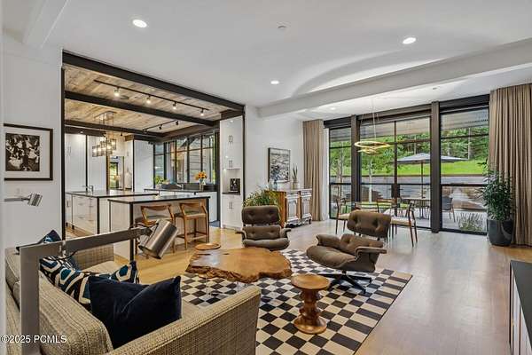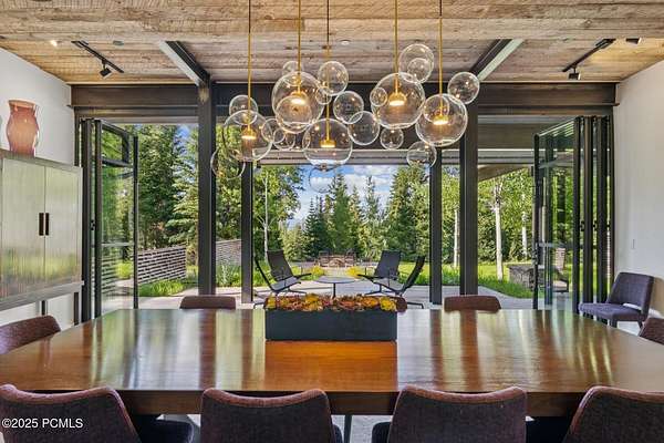 Nestled in the exclusive White Pine Ranches, this stunning residence offers rare ski-in access to Park City Mountain, striking mountain-modern design, and seamless indoor-outdoor living just minutes from downtown Park City and Kimball Junction. Designed by JLF Architects, the home features White Oak flooring, steel-framed Optimum windows, custom cabinetry, Taj Mahal and leathered granite countertops, and high-end hardware throughout. The heart of the home kitchen, breakfast, and family rooms offers a sunlit gathering space with Sub-Zero and Wolf appliances, Dornbracht fixtures, and accordion doors that open fully to merge indoor and outdoor living. The primary suite includes a fireplace, private deck, and spa-like bath. Upstairs are four guest suites with en-suite baths and shared living/play areas, plus a hidden kids' room. The lower level hosts a large entertainment area, wine cellar, custom bar, game space, and sixth bedroom with private patio, along with 2,000+ sq ft of unfinished space. A 60-foot pool, glass-walled gym, and separate Pilates studio round out the resort-style amenities. Located just steps from Tombstone lift via a private gate, you can ski in, gear down in the mudroom, and unwind by the firepit or hot tub. Morning coffee, apres-ski evenings, and tranquil mountain air make this more than a home it's a lifestyle.