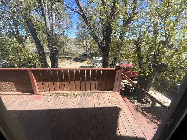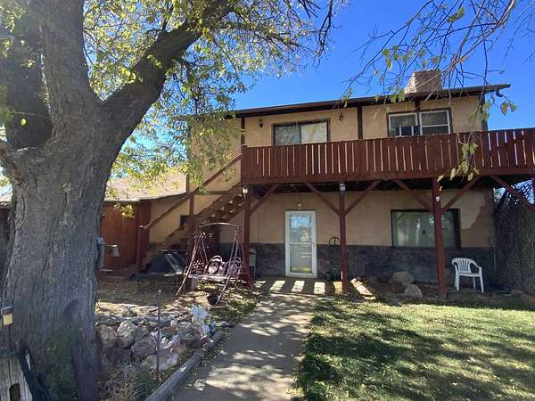 Great Location! Great Setting! Great Potential! This 3,892 sq. ft. home on 2 levels is set on 4.97 Acres +/- on the oil road west of Lake Minatare. The home features a large kitchen with newer oak cabinets and nice dining area. There are two spacious living areas up & down. The main floor living room is 14' x 31' with a fireplace insert and a free-standing wood stove. The upstairs area is 14' x 17.5' with sliding glass doors out to a full front balcony that has exterior stairs. A 30' x 40' attached garage has two OH doors and extra workshop space. A covered patio and enclosed porch lead to the home. There are 3 bedrooms & 1 and 3/4 baths, laundry area and other bonus rooms for office, nursery, craft room or storage. The partial unfinished basement contains water heater, water softener, RO System and pressure tank. There is a private well and septic system - both in working condition. There are other buildings on the property for possible storage or animals. The big, beautiful trees provide great shade and protection! This property has room for a family, room for animals and room to grow! Take a look at this property now and plan for your future in the country. Legal Description: Pt of the W 1/2 NE1/4 of Section 33, Township 23N, Range 54 West of the 6th P.M., Scotts Bluff County, Nebraska 2025 Real Estate Tax: $3,993.00