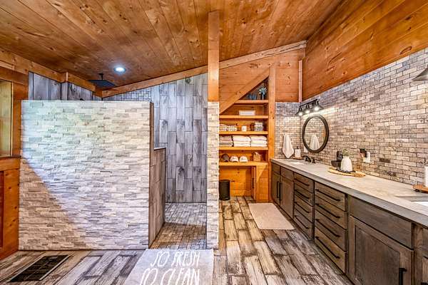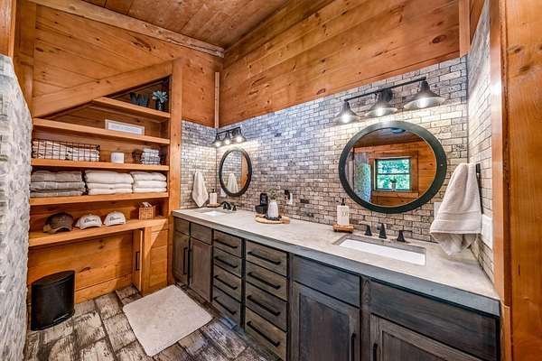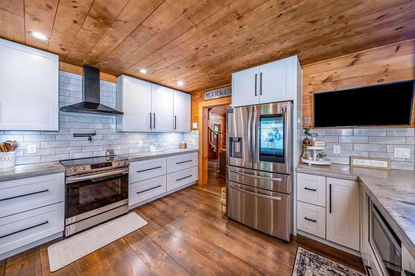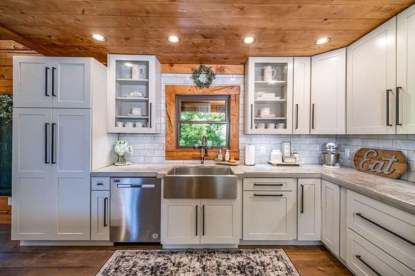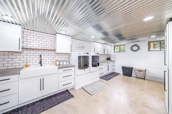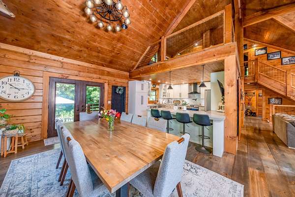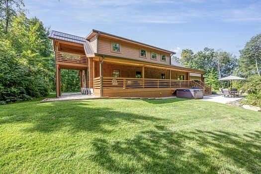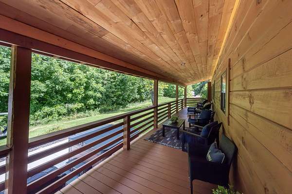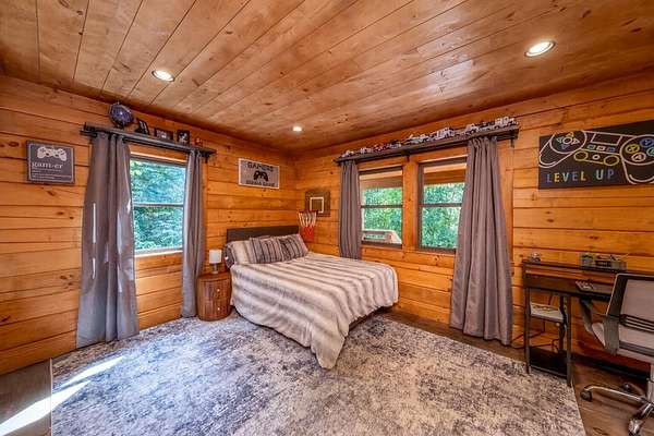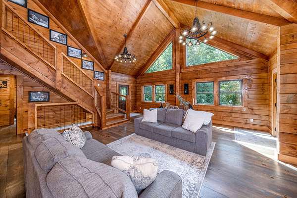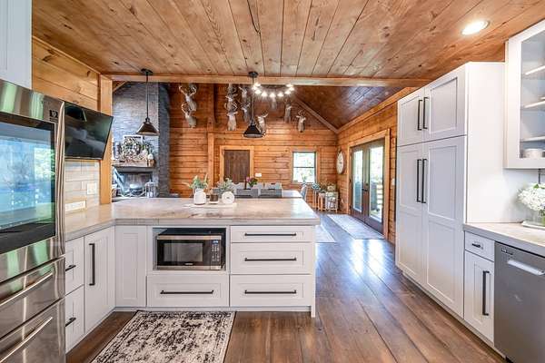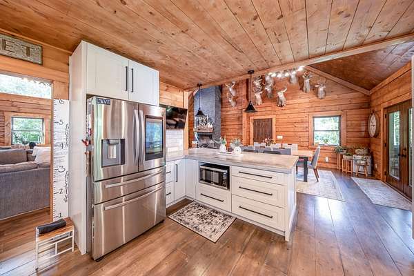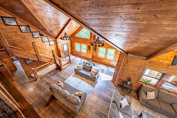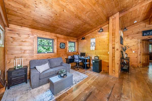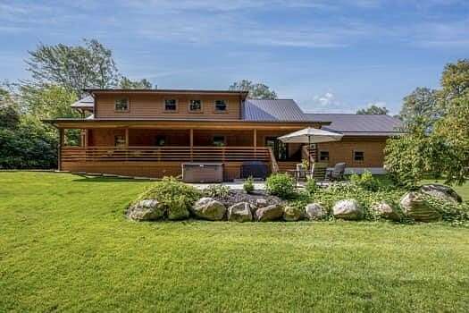 Welcome to this custom-built log home on 10 wooded acres, offering over 4,500 sq ft of finished living space. This four-bedroom, three-and-a-half-bath retreat blends rustic charm with modern luxury. A soaring 20-ft vaulted ceiling with dramatic high accent windows and a wall of woodland-view picture windows fill the home with natural light. The open living area showcases custom woodwork and a stunning stone fireplace. The gourmet kitchen features sleek cabinetry, concrete countertops, and a large peninsula with seating, and Samsung smart appliances. The spacious primary suite offers heated floors, a spa-like walk-in shower with dual shower heads, and a private balcony-perfect for peaceful coffee mornings. Radiant in-floor heating runs throughout the entire home-including the heated and cooled four-car garage. The home is also equipped with modern smart technology, including multi-zone smart thermostats that allow you to control the climate on every level, plus high-speed internet for seamless connectivity. Downstairs, the finished lower level extends the living space with a cozy family room, rustic shiplap walls, stylish metal ceilings, and a Pinterest-worthy laundry room. Upstairs, an extra-large, mostly finished bonus room above the garage offers flexible options for a gym, office, playroom, or guest suite. Outdoors, over 800 sq ft of covered porches wrap the home, creating ideal spaces for entertaining, relaxing with family, or simply taking in the wooded scenery. The 10 wooded acres also offer excellent deer hunting right out your back door. A 30x40 pole barn provides ample room for a 40-foot camper, pontoon, and more. A second barn houses a Classic outdoor wood boiler with storage for a year's worth of firewood and equipment. For those interested in homesteading, a ready-to-go chicken coop is included. Multiple hydrants and an underground sprinkler system make caring for the landscaped grounds simple and efficient. Comes with a year's worth of logs for wood boiler. Every detail of this home has been thoughtfully designed to combine comfort, function, and rural charm. With radiant in-floor heating throughout, expansive outdoor living spaces, and 10 wooded acres of privacy, this Lakeview retreat is modern comfort and country freedom wrapped in one unforgettable package.