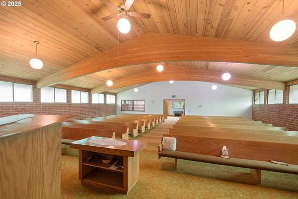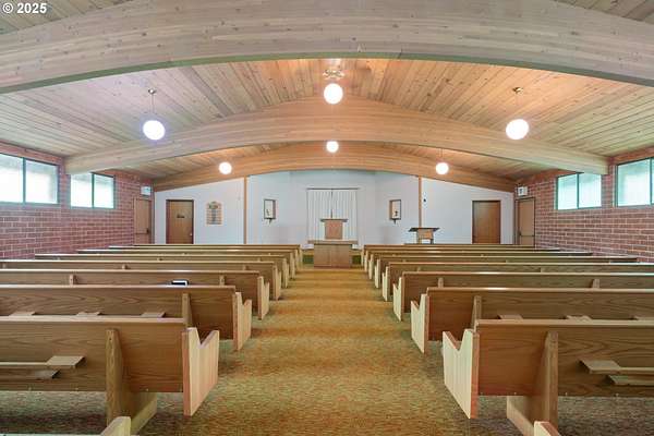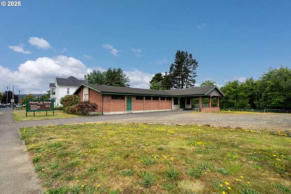 Rare opportunity to own 2.07 acres within Tillamook city limits, zoned TM-R-O (Multiple Residential Use District), offering exceptional redevelopment potential. The well-maintained former Church of Christ building could be revived as a house of worship, or reimagined for other permitted or conditional uses such as multi-family housing, nonprofit or government office space, or a care facility. Located on a major corridor with great visibility, the site offers a large, level building envelope with room for expansion. Back portion of the lot slopes away, leaving approximately one-third of the acreage readily usable. City zoning supports high-density residential and mixed-use development. Just minutes to shopping, services, and downtown Tillamook.