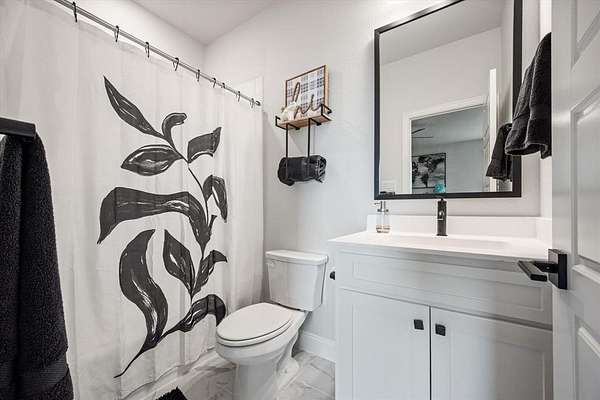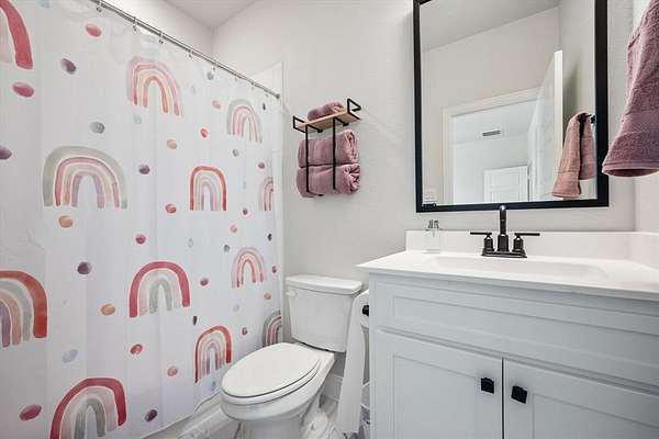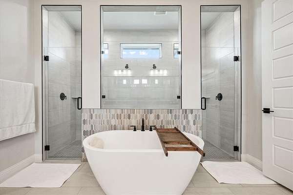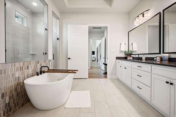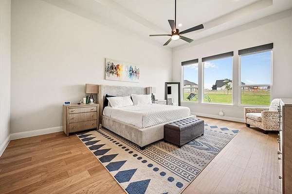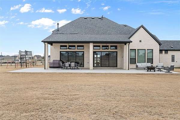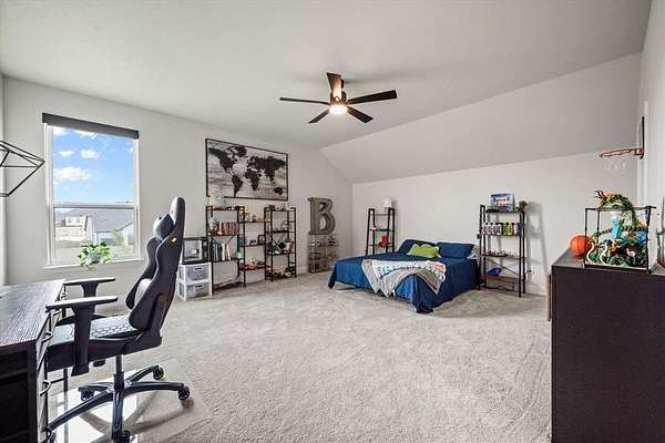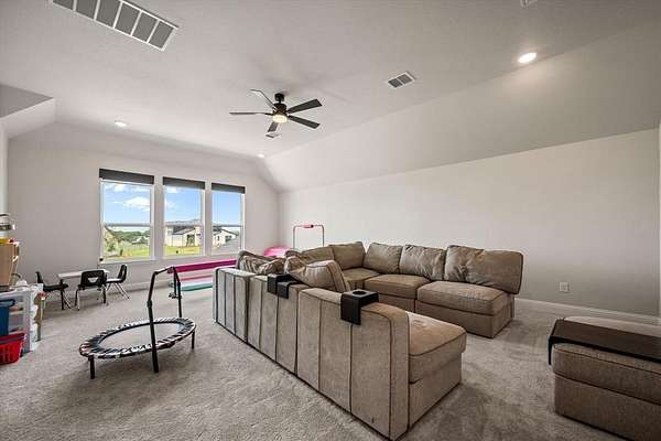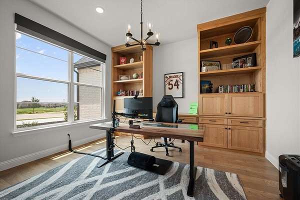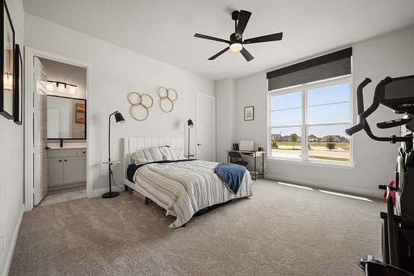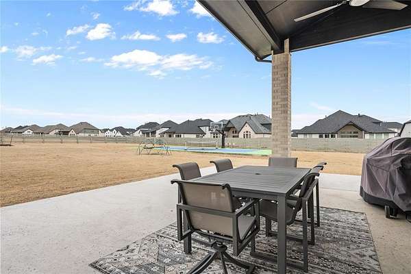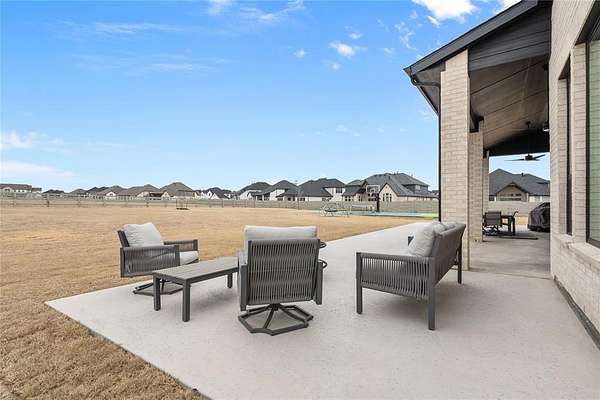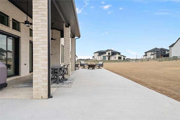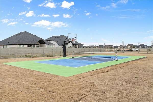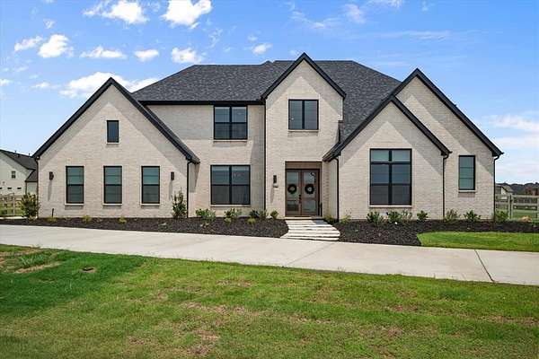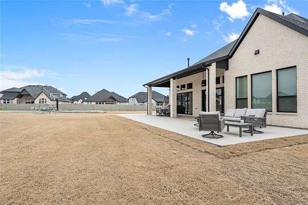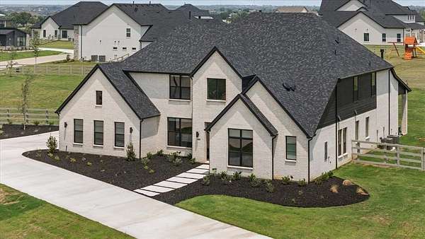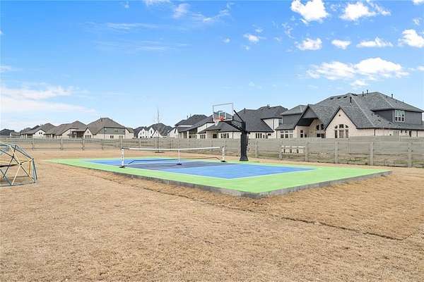 BETTER THAN NEW!! 2024 masterpiece with all of the new construction kinks worked out. Nestled in the sought-after, master-planned community of Harvest directly across from the serene community fishing pond. Featuring 5 spacious bedrooms, each with its own ensuite bathroom, plus a convenient half bath for guests; this home is ideal for luxurious living and effortless entertaining. Enjoy the elegance of a HUGE chef's kitchen outfitted with a gas cooktop, double ovens, walk-in pantry, and abundant cabinetry. The open-concept floorplan flows seamlessly into a large back patio, highlighted by a stunning sliding glass wall and pre-wired for outdoor speakers--perfect for gatherings. This smart home, powered by HomePro Smart Home Services, also includes a private office, a media room pre-wired for surround sound, and a massive utility room with cabinetry and a sink. The primary suite offers a spa-like retreat with a garden tub, a walk-through shower, and a customizable closet system. Additional features include: Second bedroom with ensuite on the main level - ideal for multi-generational living or guests, Tesla charging station and epoxy flooring in the oversized 4-car garage, Circle driveway for added curb appeal and convenience, HUGE extended patio, Custom sport-court for basketball and pickleball, Full sprinkler system, fenced 1.69 acre lot with strategically placed French drains, Room-darkening blinds, City water and sewer. Ideally situated in award-winning Argyle ISD and offering an incredibly low tax rate. This home offers the perfect blend of elegance, functionality, and location--don't miss your chance to own a slice of luxury in Harvest!