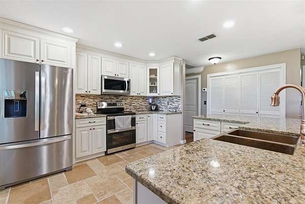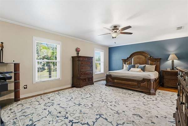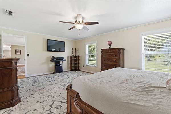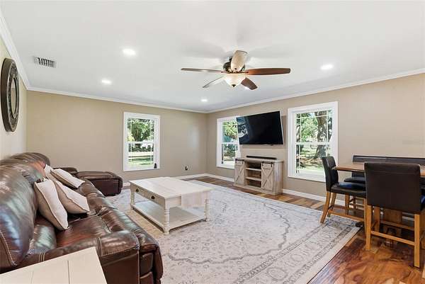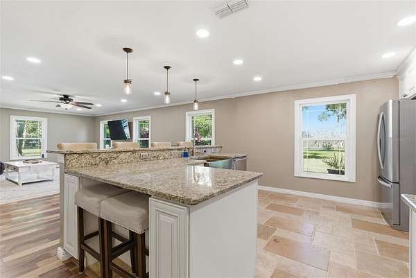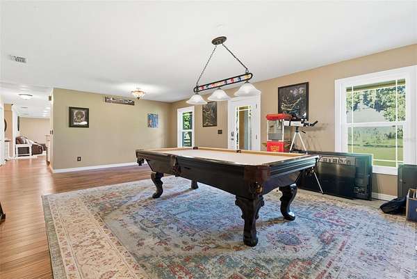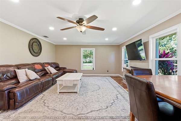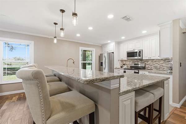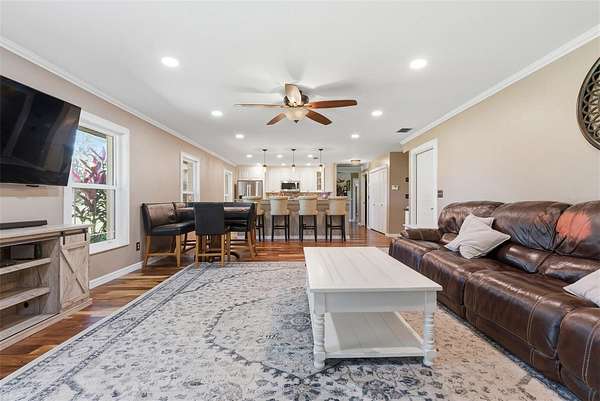 Looking for privacy? This beautiful traditional home sits on 3.5+ acres, is gated, and features its own fully stocked pond and a barn/storage building. Inside features 3 beds, 3 baths, a 2-car garage, and an open formal living/dining area. Spacious kitchen opens to the large family room. with granite countertops, stainless steel appliances, and a copper sink. The Primary Suite features engineered wood floors, dual sinks, and a custom double shower. The 2nd bedroom has an en-suite bath being remodeled, and the 3rd bedroom connects to a Jack-and-Jill bath. Updates include A/C 2024, a new Septic tank in 2023, and a new roof in 2023. Windows and doors were replaced in 2016 and 2019. Enjoy the covered patio with plenty of space for entertainment. Easy access to I-4, plenty of room for RV/boat parking. Schedule your showing at Hawks Griffin today!