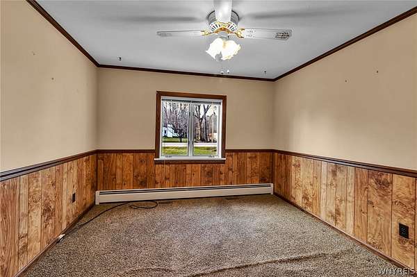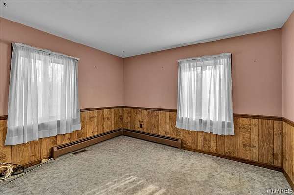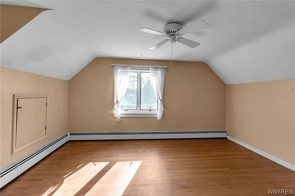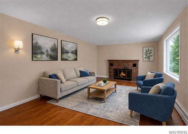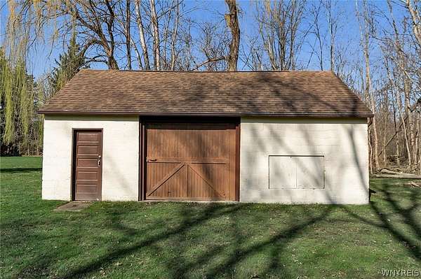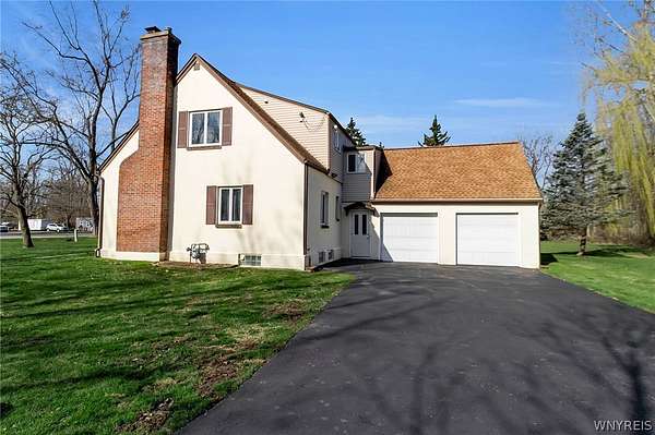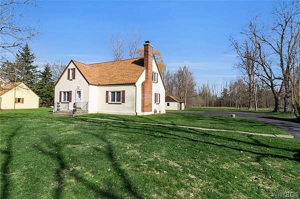 Welcome to a charming, well maintained four-bedroom Cape Cod in desirable East Amherst. Located in the highly sought after Williamsville Central School District. Situated on 2.7 acres, the property offers a spacious yard and a large storage barn. The home features an eat-in kitchen with abundant wood cabinetry and newer appliances. The main entrance features a large cedar closet, then opens into a cozy living room, formal dining room, first floor bedroom and a half bath. Upstairs includes three generously sized bedrooms and a full bath. Hardwood floors run throughout. Additional highlights include a whole-house Generac generator (2023) with a transferable warranty, central air (2023), updated electrical panel 200 Amp. (2023), dry basement with ample storage. All appliances are included, including a new washer and dryer and an extra refrigerator. Some photos are virtually edited.