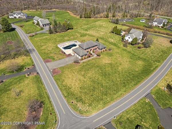 Do Not Wait to See This One-Owner Brick Colonial Home w In-Ground Pool and In-Law Suite on Cleared Near 2-Acre Property in the Heart of Cherry Valley's Most Desirable Neighborhood - Fox Run! Set in a private enclave of manicured properties just moments to downtown Stroudsburg, Route 80 and preserved lands ideal for hiking and exploring, this 5+ bedroom home is an extremely rare find. Oversize paved driveway leads to 3-car side entry garage. Step into 9 foot ceiling main level foyer flanked by gracious dining and the den/office. Large family room is completed by brick fireplace with access to patio and large windows that overlook the pool, yard and hillside beyond. Every space is gracious and well-utilized, including eat-in kitchen w breakfast bar and loads of prep and storage space. At the right wing, find in-law suite w its own kitchen, bedroom and accessible full bath, making two full baths on the first floor. Four spacious bedrooms upstairs, including huge primary en suite. Massive walkup attic, huge dry basement and storage shed. Loads of initial quality upgrades including hardwood floors, 6-panel wood doors, and huge closets. New dual-zone central cooling, forced air heat and central vac. With neighboring properties selling at over a million dollars, this is the perfect opportunity to purchase a move-in-ready home in an amazing setting where you can personalize and build even more value over time. Do Not Delay - Call for Your Private Tour Today!