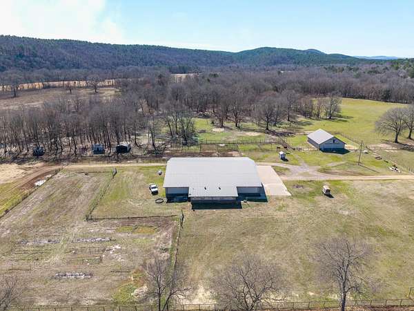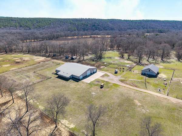 A RIVER RUNS THROUGH IT!!Located approx. 27 mi SE of Waldron this working cattle ranch can support 70-100 head of cattle on its improved grass lands. Cross fenced with barb wire and over 8000 ft of steel pipe fencing, corral and working pens, all built for extra durability and convenience. Amenities include the custom entrance security gate, 4 acre yard w/house pad in place, 90x100 metal shop featuring an 800 sf 1 BR, 1 BA attached apartment w/interior RV hookup.A custom metal 40x50 barn with stalls/loft offers hay storage of up to 800 square bales in the loft area and concrete floors.Enjoy the sounds of the bubbling Brush Creek which winds through the property & within view from the home-site and offers a wonderful swimming and picnic area.Apprx 120 acres of the property is in a blend of mature woodland of hardwood and pine timber. Possibly the most unique feature to the property is the 1 mile of river frontage and National Forest Land boundaries with access to Muddy Creek Wildlife Management Area.The river frontage offers approximately 1/4 mile of beautiful rapids, natural sandbar crossings and hours of enjoyment waiting for you!