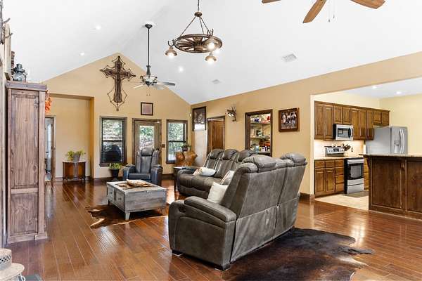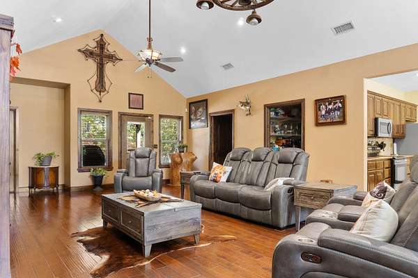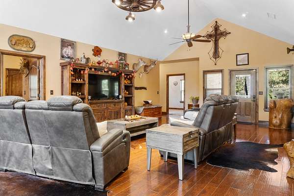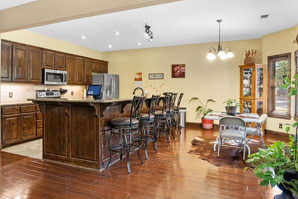 Stunning 4+- Acre Property with Custom Rock & Log Home Near Tishomingo! Discover exceptional privacy, convenience, and craftsmanship with this unique 4 AC (more or less) property-ideally located just 4 miles from downtown Tishomingo, 30 miles to Durant, and 45 miles to Ardmore, Atoka, and Ada. The west fence line borders U.S. Army Corps of Engineers land, maintained by the Wildlife Department, ensuring permanent privacy with no future development behind you. Property Highlights 2230 sq ft Custom Rock & Log Home (Built 2012) Crafted with quality and built to last, featuring a floor-to-attic spray foam insulation envelope, real hardwood floors, and knotty alder cabinetry. Brand-new upstairs AC evaporator system Spacious interiors with rustic warmth and modern comfort Walk-in therapy spa tub in the master bathroom Rock patio with steel firepit perfect for entertaining Large concrete circle drive and concrete approach from Hwy 22 E Garage & Additional Structures 16' x 40' garage professionally enclosed with insulated door 16' x 44' RV/Motorcoach shed 8' x 12' Graceland portable building, anchored 20' x 20' concrete pad with a second 1,000-gallon septic tank-ready for an additional structure Steel-fenced 20' x 30' x 2' x 6" enclosure in backyard-ideal for small animals Utilities & Mechanical Features Generac 22-KW propane standby generator-automatic on/off for seamless power backup 140? on-demand hot water system 200 ft well featuring Leaf Water Solutions purification: removes iron/calcium + UV bacteria light 1,000-gallon septic tank w/300 ft lateral line (plus second 1,000-gallon tank noted above) 300-gallon propane tank Outdoor Amenities Octagon 24', 3'6" above-ground pool with large wraparound wood deck Sidewalk to pool, power hook-ups, winterized pump Property boundary includes the white pumphouse and basketball goal Appliances Included Samsung microwave & dishwasher Whirlpool refrigerator Location & Lifestyle This property offers the perfect blend of rural peace and accessibility. With Corps of Engineers land as your neighbor, enjoy unmatched privacy, abundant wildlife, and quiet country living-while still being close to shopping, dining, and major towns.