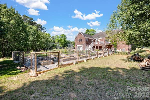Presenting Forrestbrook Farms! Centered around a beautiful one story home with a light filled open layout. Step outside and the property really comes to life with a thriving garden bursting with seasonal produce in a 40x70 enclosed vegetable garden featuring 20 white cedar raised garden beds thoughtfully cultivated for beauty and sustainability. A red cedar walk-in chicken coop spacious enough for 25 laying hens adds to the homestead charm offering fresh eggs and a touch of rural charm. The 17 acres of picturesque land is ideal for expanding into a multi-home family compound, grazing goats or hunting, adding guest cottages, workshops or recreational areas. There is currently a 100x100 fenced orchard with established fruit trees and a small apiary with 2 to 4 hives. The home has views of the reservoir and is still convenient to popular downtown Kannapolis! This pristine full brick home offers a split bedroom layout for a large family or generational living and is tucked away at the end of a beautiful dead-end street. Luxury primary suite has a stunning bathroom and is truly a retreat. The secondary bedrooms are generous size, and each has access to a bathroom. The great room open to the kitchen and the outdoor porch and patio. The kitchen is wonderful with 2 sinks, a warming drawer, an enormous walk-in pantry, & a wine/beverage refrigerator. The garage has 1082 SQ FT & has room for 4+ cars PLUS a walk-up attic for additional storage. There is a 1694 SQ FT basement area with tons of room for storage/workspace with a garage door with easy access for a riding mower or ATV. Whether your vision is a shared retreat or a self-sustaining lifestyle, this property is peaceful, private, a place to grow, gather and build something lasting!