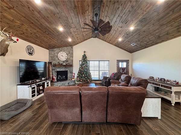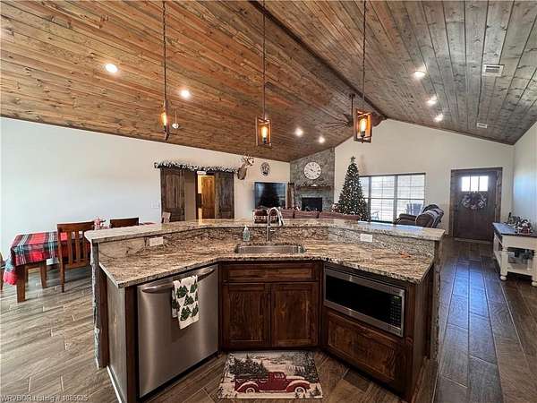 This 2023-built 4 bedroom, 2 bath home sitting on 34 beautiful acres just outside Panama. The home has 1,972 sq ft of living space and was thoughtfully placed on the hilltop of the property, leaving plenty of room for you to add a shop or any future improvements you need. Inside, you'll find a comfortable, open layout with lots of natural light and space for the whole family. The spray foam insulation will help keep utilities to minimum. The land offers a great mix of privacy and usable space, along with a seasonal creek, plenty of wildlife, and room to explore or make it your own. A storm shelter is already in place for extra peace of mind. If you've been looking for a newer home with land and room to grow, this property is definitely worth a look. Schedule your showing today!