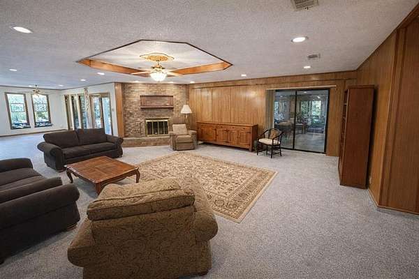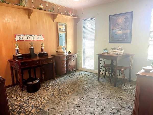 Hard-to-find acreage in Malakoff offering space, privacy, and versatility. Situated on over 14 acres with two ponds, this property delivers a unique opportunity for those seeking a peaceful country setting just minutes from Cedar Creek Lake. The 3-bedroom, 2-bath home features a spacious living area with wood-paneled walls, built-ins, and a brick fireplace. Large windows and glass doors bring in natural light and provide views of the surrounding trees and landscape. The flexible layout offers multiple living and dining spaces for everyday living or entertaining.