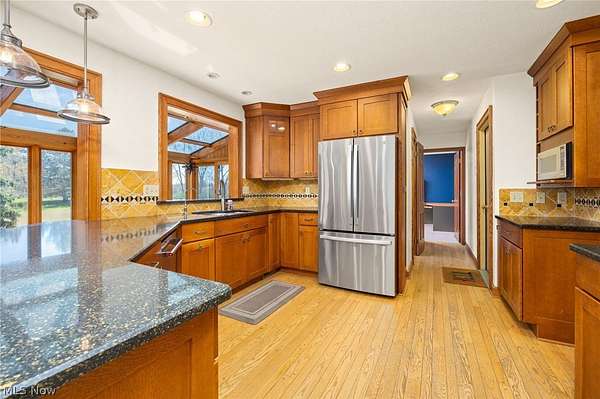 9+ Acre Hinckley Retreat w/ Pond, Horse Barn, Geothermal, Orchard & 3-Tier Patio, 1 Mile to I-271 Escape to your own private retreat on 9.13 scenic acres in Hinckley. This charming 2,700 sq. ft. home offers the perfect blend of comfort, functionality, and peaceful country living while remaining incredibly accessible just one mile from the I-271 entrance. Inside, you'll find real wood floors, stone countertops, and beautifully crafted real wood cabinetry that create a warm, inviting atmosphere throughout. Geothermal heating and cooling provide energy-efficient comfort year-round, while the unfinished basement offers endless potential for additional living space, recreation, or storage. Step outside and experience the lifestyle this property delivers. A stunning three-tier stamped concrete patio overlooks the serene landscape, complete with a pond, apple orchard, and open space ideal for a hobby farm or animals. The two-story horse barn includes additional wood flooring ready to finish the home, while a U-shaped driveway and attached two-car garage add convenience and functionality. With room to roam, farm, garden, or simply enjoy the quiet surroundings, this property offers a rare opportunity within the highly desirable Highland Local School District, perfect for buyers seeking space, serenity, and accessibility in one exceptional setting.