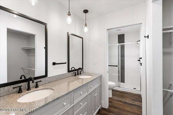 Experience the charm of true country living at this beautifully updated modern farmhouse set on a flat, fully fenced property with room to create the lifestyle you've been dreaming of. From the inviting covered front porch this home offers the perfect balance of comfort, space, and rural character. Inside, the bright and open layout is designed for everyday living and entertaining all flowing seamlessly into the main living spaces. Updated LVP flooring, soft carpet in select areas, and modern finishes throughout create a warm yet refreshed feel. The home offers two generous living areas, giving flexibility for gatherings, a game room, or a cozy second family room. A huge laundry and utility room provides incredible space with endless possibilities for hobbies, storage, or a custom workspace. Upstairs, all bedrooms are thoughtfully placed on the second floor, creating privacy and a comfortable retreat from the main living areas. Step outside and enjoy the wide-open possibilities of this property. The level, fenced acreage offers plenty of space to build your own homestead, bring all your animals, add a shop, or park RVs and all your toys. Whether you envision gardens, animals, or simply peaceful wide-open space under big Arizona skies, this property delivers the freedom and country lifestyle you've been looking for. A rare opportunity to enjoy updated farmhouse living with space, privacy, and endless potential.