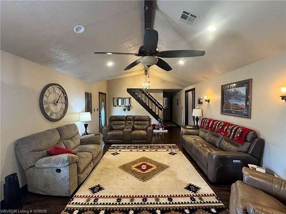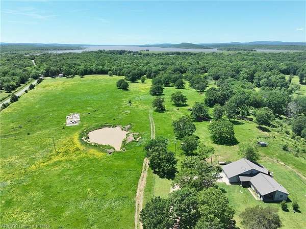 25096 Nobes Road, Howe, OK 74940--a stunning 3-bedroom, 2.5-bath custom-built home situated on 10 picturesque acres. This property seamlessly blends luxury, practicality, and natural beauty, all within minutes of Wister Lake.