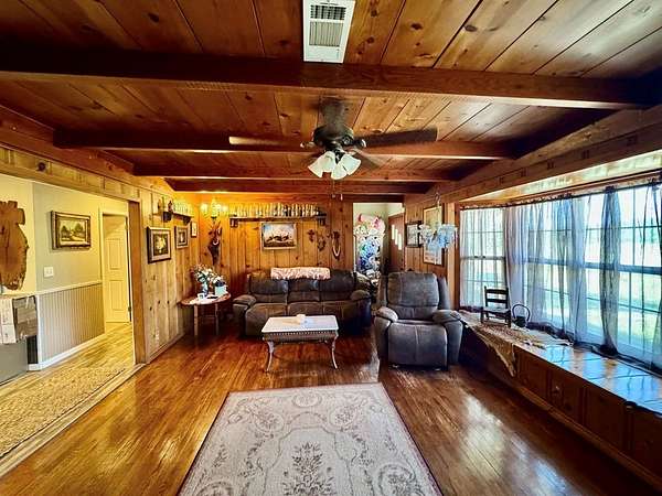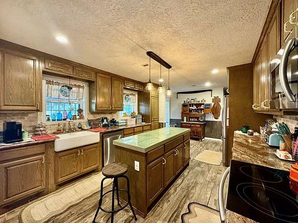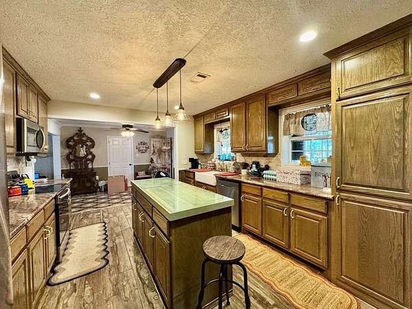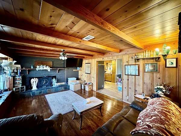 Beautiful 14 unrestricted, gently rolling acres—The main home offers 3 spacious bedrooms & 2 bathrooms, tastefully updated with modern finishes including granite countertops, stainless steel appliances, farmhouse sink, and an island workspace in the kitchen, living room with a wood-burning fireplace, and the primary suite includes an ensuite bath with a large walk-in shower. Connected under the same roof, the home also features a separate 1-bedroom, 1-bath guest apartment with its own kitchen, large living room, and private entrance—ideal for multigenerational living, guests, or rental income. Enjoy the outdoors from the large screened-in porch or relax on the charming front porch. Property features a 40x40 metal building/garage with a 12x15 air-conditioned office, 10x13 mini workshop, Chicken coop & she shed/storage shed with AC. This versatile property combines comfort and country charm, with no restrictions—bring your animals, your business, or simply enjoy the privacy and space.