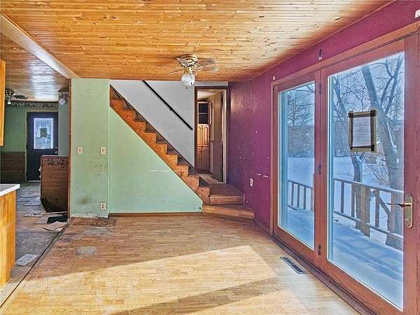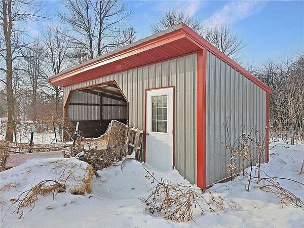 Situated on approximately 4.57 acres just north of Osakis, this property offers a desirable rural setting with open space and light tree coverage, providing privacy and flexibility for a variety of uses. The standout feature is the large detached garage with approximately 1,800 square feet, offering ample room for vehicle storage, equipment, hobbies, or workshop needs. The home features a functional layout with main-level living space and an upper-level bedroom, along with a deck overlooking the surrounding acreage. A well-maintained county road provides year-round access while maintaining a quiet country feel, making this property well suited for buyers seeking land, storage capacity, and a rural lifestyle within convenient driving distance of town.