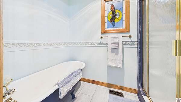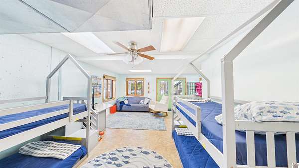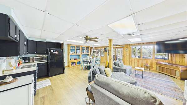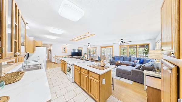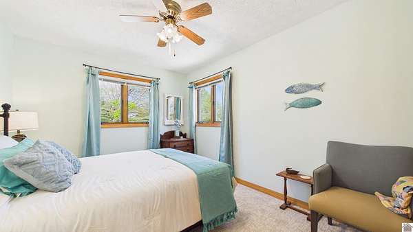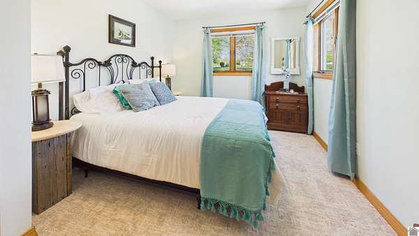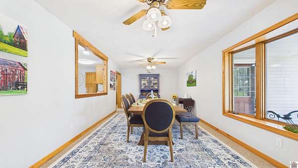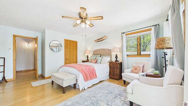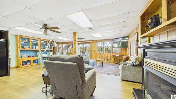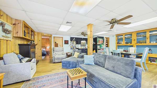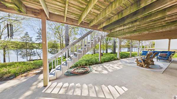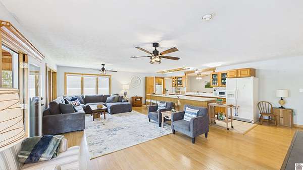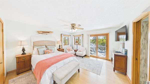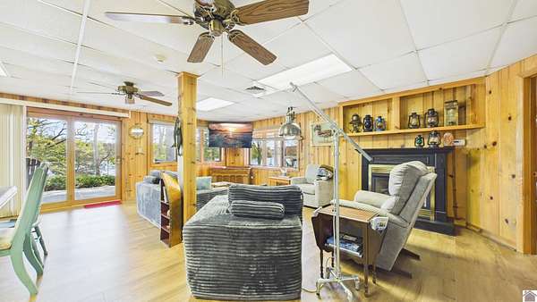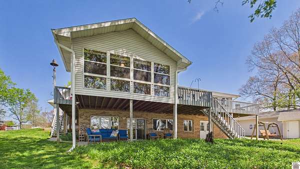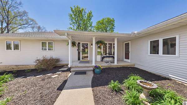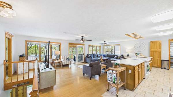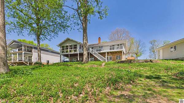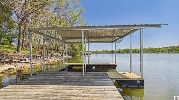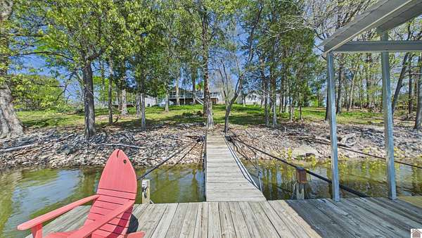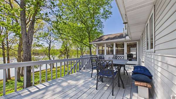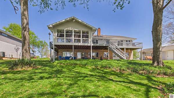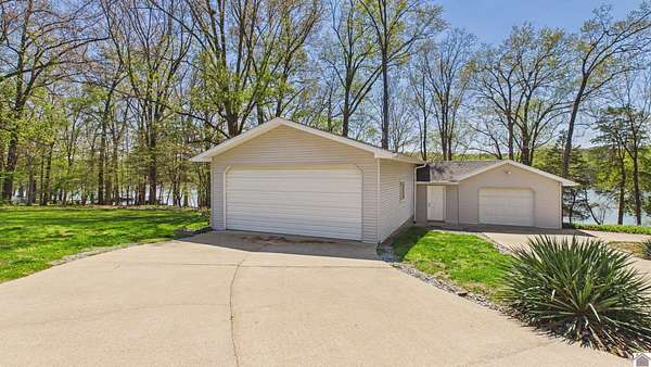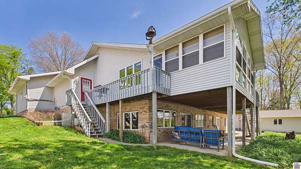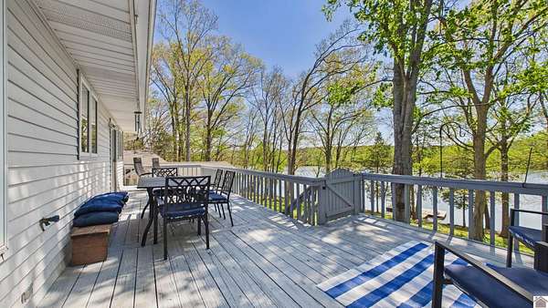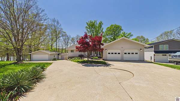 Enjoy the lake life in this 5+ bedroom (sleeps 15) 3 bath waterfront home. It has been upgraded and updated throughout. Your private boat dock has a new covered boat slip added to the already huge swim platform. Fish earlier in the spring and later in the fall with year-round water. With three separate garages you have ample storage for all your vehicles and toys. There is a two-car attached garage, a single car garage and a double deep two-car garage.The beautiful grounds consist of three lots at 1.9 acres with mature trees and flowers. The gently sloping lot makes for an easy stroll to the dock.Fresh paint, flooring and quartz countertops are just some of the upgrades in this 4,020 square foot house. The open concept kitchen and living area are great for socializing and are connected to the welcoming sun porch with incredible views of the yard, the lake and the birds and wildlife. The formal dining room has space enough for a family-sized table for those larger gatherings.