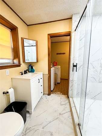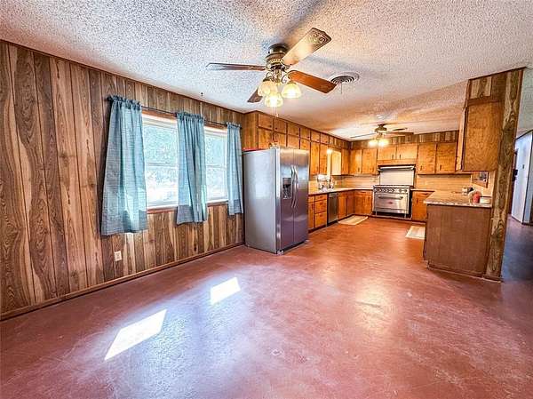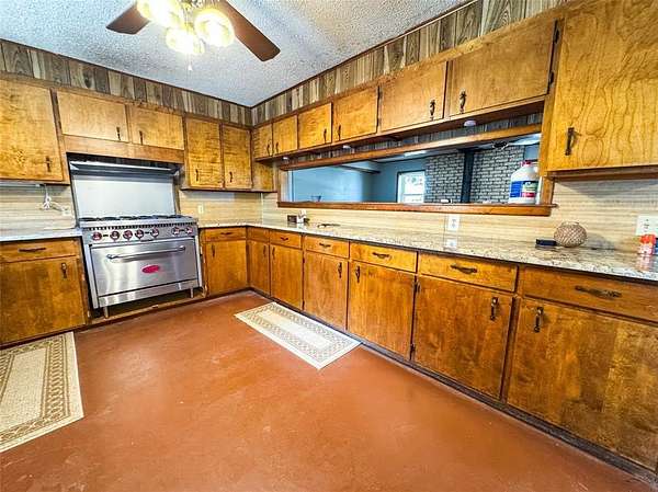 This beautiful ranch-style brick home sits on 100 acres just outside of Swenson in a highly sought-after area. Featuring three spacious bedrooms and two updated bathrooms, the residence offers comfort and modern amenities throughout. The home boasts a metal roof for durability, an Earth Brand wood stove for cozy evenings, and a recently updated kitchen complete with granite countertops and a state-of-the-art gas range. Each bedroom is generously sized, with the master suite offering a stylish ensuite and the guest bath also fully updated. A brand-new back patio expands the living space outdoors, providing the perfect spot to relax and take in the surrounding views.