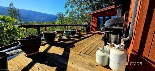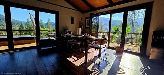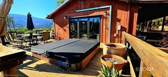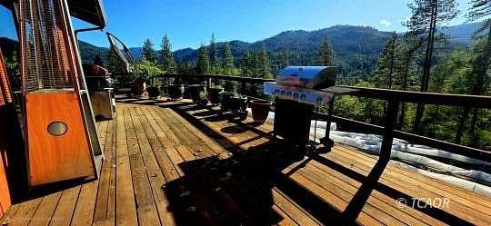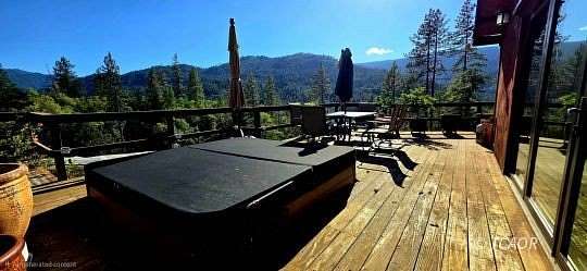 This remote mountain retreat on 19+ acres across two parcels offers modern comforts just minutes from charming downtown Hyampom, the South Fork River for swimming and fishing, and all amenities. The upgraded home boasts hickory flooring, panoramic windows with built-in remote-controlled blinds, efficient mini-split heating/cooling, and a relaxing den with expansive windows and custom solid-wood doors with keyless entry (a second bedroom features a unique "televator" TV). The beautiful redwood deck is an entertainer's dream, featuring a large hot tub, outdoor shower, and propane BBQ. Each parcel has it's own private well with individual irrigation systems, ensuring ample water supply, and a new 7000-watt generator in a soundproof building provides worry-free living, making it perfect for unwinding in the mountains with all the comforts of modern life. Cannabis permits held for the two Individual seperate parcels with the county and state, combined under one LLC. The property, situated at the end of the road, provides ample space for a workshop, additional home, and equipment storage. Seller Financing is available!