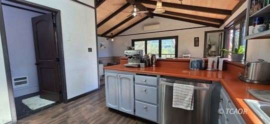 - Laminate/Formica Laminate, Countertops Wood, Hot Tub/Spa, Vaulted Ceilings, Ceiling Fan(s), Wood Stove, Flooring Wood, Skylights, Window Coverings, Flooring Fireplace