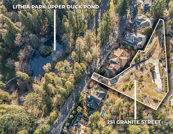 Extraordinary Views Lot Directly Across Street from Ashland's Famous Lithia Park & Walkable to Downtown! A rare opportunity to purchase a building parcel on the desirable Granite Street, overlooking the Park. This premium .65 acre lot is easily accessible via a high-quality paved private driveway. City utilities are already available at the building site, which is terraced with beautifully constructed retaining walls and offers 3 stunning views of Grizzly Peak, the Siskiyou Mountain Range, and Lithia Park (bonus: a peekaboo view of the water of Lithia Park's Upper Duck Pond!), and is located among other luxury custom homes on Granite Street- walking distance to the Oregon Shakespeare Festival & Ashland's Downtown Plaza, Ashland Creek, Pickle Ball Courts, Siskiyou hiking trails, and more! The Granite Street Trail even runs along the parcel. A rare opportunity with a resort feel, this premium lot is ideal for your dream home or as a quality investment property-don't miss it!