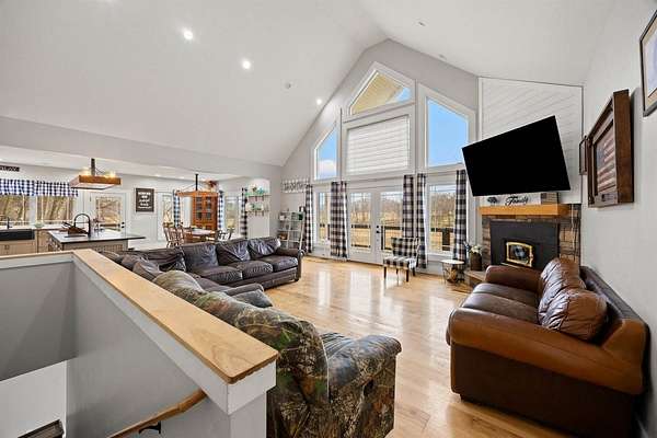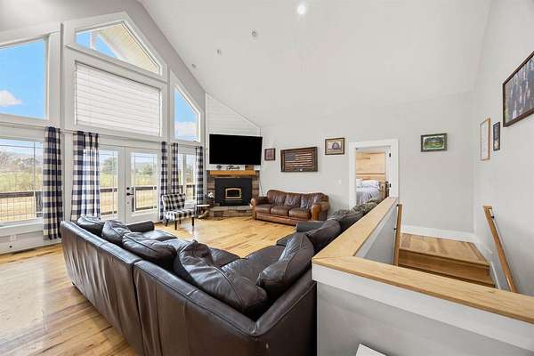 Private, scenic living just minutes from town! 251 Holt Ln offers a beautiful hillside setting with a home designed for comfort and functionality. The open-concept main level features an updated kitchen, dining, and great room with soaring ceilings, expansive windows, hickory hardwood floors, and a wood-burning fireplace. The main-floor primary suite includes two walk-in closets and a spacious bath with a large dual-head shower. Laundry is located on both the main and lower levels. The walkout lower level provides four bedrooms, two full baths, and a large living area offering flexible use. Enjoy outdoor living with a large upper deck and wraparound lower concrete patio. The property includes chicken coops, apple trees, blackberry bushes, and open ground suitable for gardening or agricultural use. Fertile fields may offer potential for cultivation or lease opportunities, subject to buyer verification. A rare combination of privacy, usable land, and convenience.
