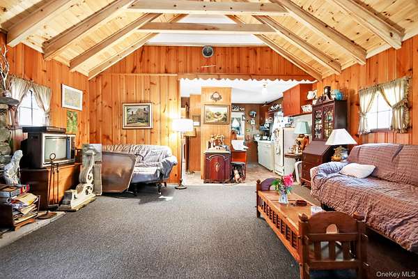 - Beamed Ceilings, Cathedral Ceiling(s), First Floor Bedroom, First Floor Full Bath, Open Floorplan, Original Details