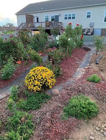 This home is an absolute must see sitting on just over 5 acres of beautiful land. The home features 9 ft ceiling and built with 2 x 6 outer wall framing. Doors to access the bedrooms are 36". It has a nice open floor plan with spacious kitchen that has 42" cupboards, quartz countertops, an 8 ft island, farmhouse sink and a large pantry. There are walk in closets in everybody bedroom and yes 2 primary bedrooms with ensuite bathrooms. The one primary bedroom also features an attached study. One of the primary ensuite bathroom features an oversized soaking tub perfect for after a long days work. There is a nice 10 X 25 deck on the back of the home overlooking the property with a privacy panel on the one side. There is also a privacy fence in front of the property and partially down one side of the property.The entry to the home has a 9 X 8 front landing. There are fruit trees and flower gardens planted on the property. The 12 X 24 insulated and lvp floored shed is great for storage.