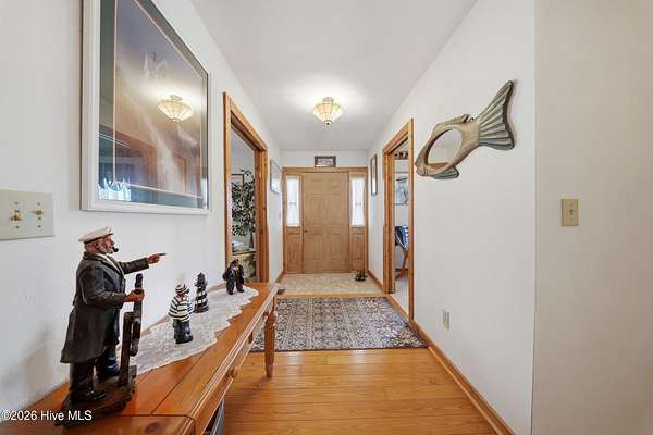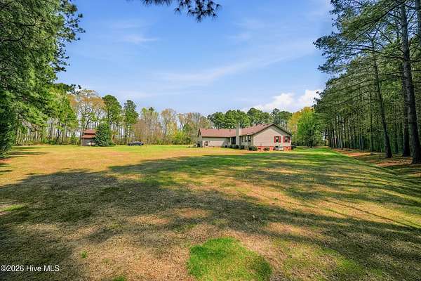 Welcome to peaceful Country Ranch Living at 251 S Trotman Rd in Camden. This custom-built home sits on a beautiful secluded just under 7 acre lot surrounded by mature trees and open farmland, offering privacy, space, and the quiet lifestyle Camden County is known for.Designed with both comfort and function in mind, the home features a formal living room and dining room, perfect for gatherings and entertaining. The family room with a cozy fireplace creates a warm and inviting space to relax, while the office/flex room provides the perfect spot for working from home, hobbies, or additional living space.The spacious kitchen features custom cabinetry and flows easily into the main living areas. A split floor plan offers privacy between the primary suite and guest bedrooms. You'll also appreciate the walk-up attic with abundant storage space and a heated and cooled garage, providing year-round comfort and convenience.One of the standout features of this property is the impressive 65-foot front porch, ideal for enjoying quiet mornings or evening sunsets while overlooking the beautifully landscaped yard. The property is enhanced with pear trees, magnolia, dogwood, and crepe myrtles, adding seasonal color and charm.Enjoy the peace and quiet of Camden County living while still being conveniently located. The Virginia line is only about 30 minutes away, and the beaches of the Outer Banks are roughly an hour's drive, making day trips to the coast easy and enjoyable.If you've been searching for privacy, space, and a custom home surrounded by nature, this Camden County property delivers the perfect blend of rural serenity and convenient access to nearby destinations.