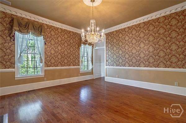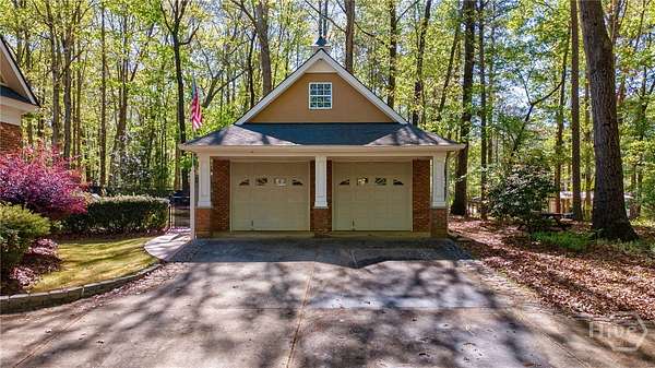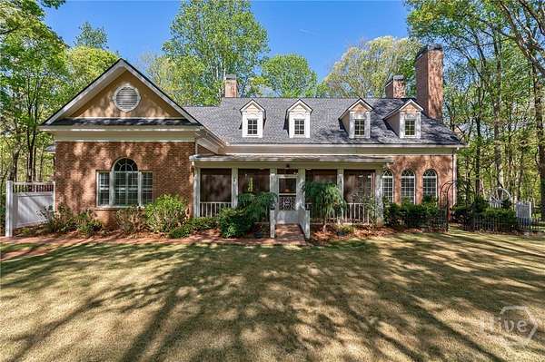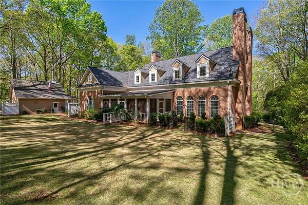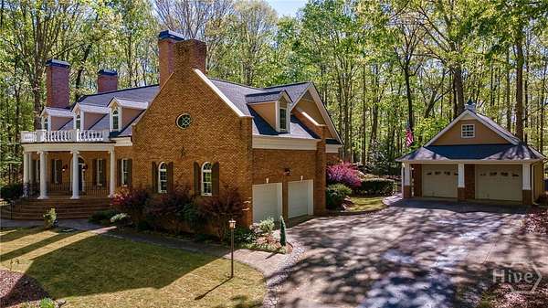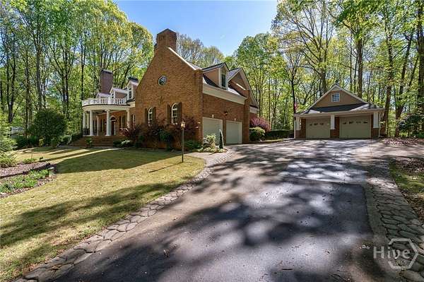 Stunning custom brick Colonial Revival estate set on 2.1 private acres. Boasting over 4,000 square feet, this 4BR, 4.5 BA home offers timeless architecture with modern luxury. A grand entry welcomes you with soaring ceilings, intricate woodwork, and elegant detailing throughout. Designed for both entertaining and everyday living, the home features formal dining, living, and sitting rooms, complemented by rich built-ins and three fireplaces. The spacious kitchen is a chef's dream with custom cabinetry, stainless steel appliances, and a large center island. Retreat to the grand primary suite complete with dual vanities and expansive walk-in closets. Additional highlights include a dedicated theater room, screened-in porch, and abundant natural light throughout. Car enthusiasts and hobbyists will appreciate the attached two-car garage plus a separate two-car detached garage. This exceptional property combines classic elegance with modern comfort in a serene, private setting.