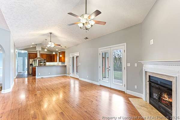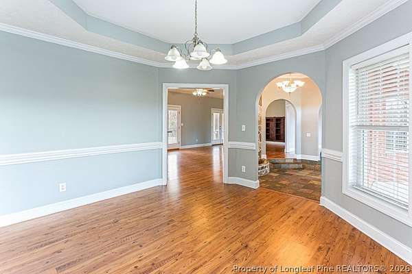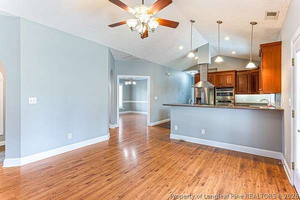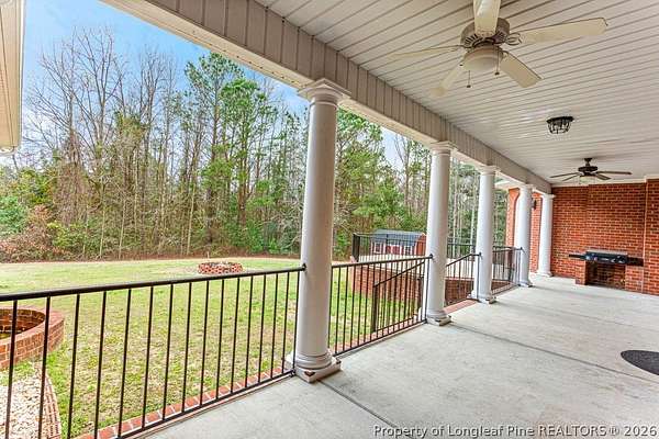 Bring your clients out to see this Beautiful all Brick 5 bedroom 3 bath home with its quiet neighborhood setting in Stedman on over 3.5 acres. 3 car side load attached garage, multiple covered porches, Patio, large yard with fire pit and storage building in rear. Inside find 5 spacious bedrooms, a nicely updated kitchen, gas cooktop, Large open family room with gas log fireplace, Formal dining with Trey ceilings, and formal Living room, Master with gas log fireplace as well as laundry room and plenty of storage . Family room opens onto large rear covered porch overlooking back yard and wooded area.
