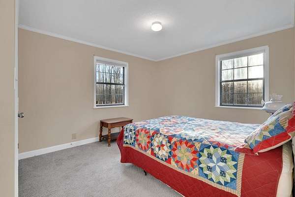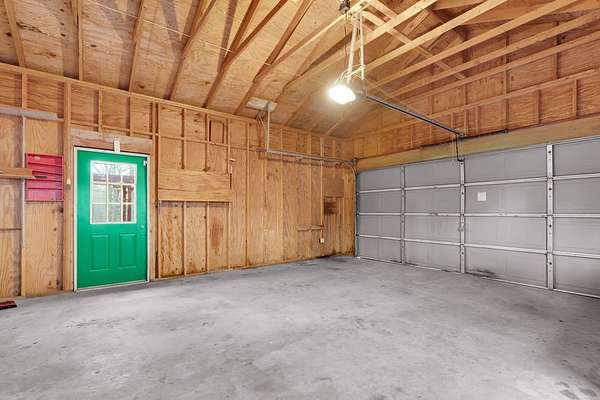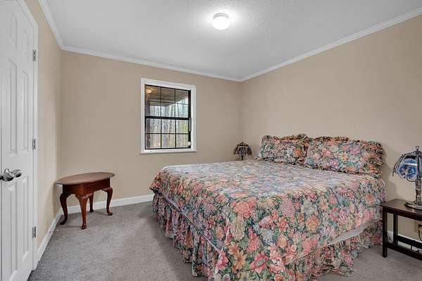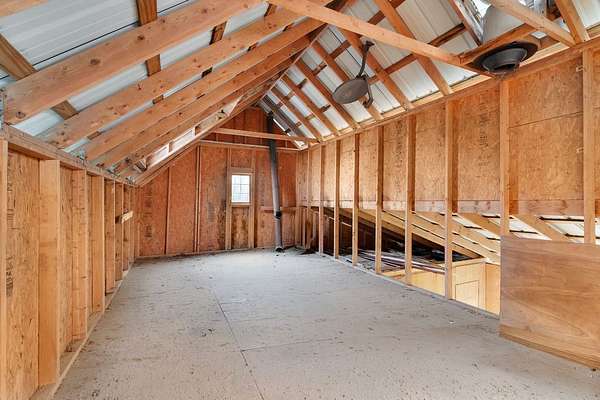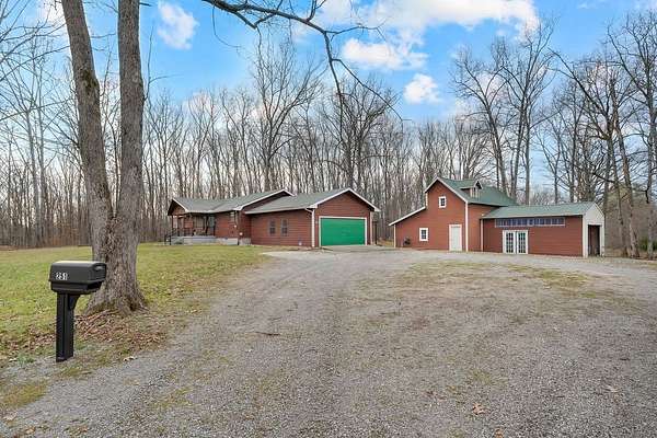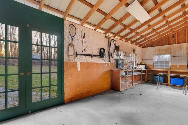 The home is set back from the road and this property has so many options for you! Plenty of sunny space for a garden and a huge workshop for all your projects! Home has an open floor place and a beautiful stone fireplace in the living room and tons of built in storage plus bookcases surround it. Large walk in pantry is just off the kitchen with a build in hutch and shelving, oversize laundry room and a mud room just off the double garage. Main bedroom has a big walk in closet and bath attached. There are 3 bedrooms and two baths plus front porch and a big rear deck. Home faces the side so you can enjoy your porch and deck looking into the woods. The workshop/barn has water and electricity plus separate storage areas for gardening and workshop things plus there is a large loft area as well. It also has another double garage attached to it, you have space for 4 plus cars and trucks to be covered and enclosed. There is also a small storage building on the property in the rear of the home.