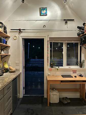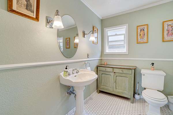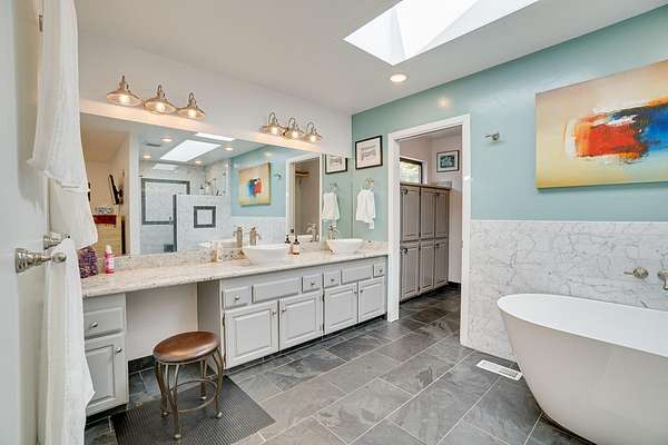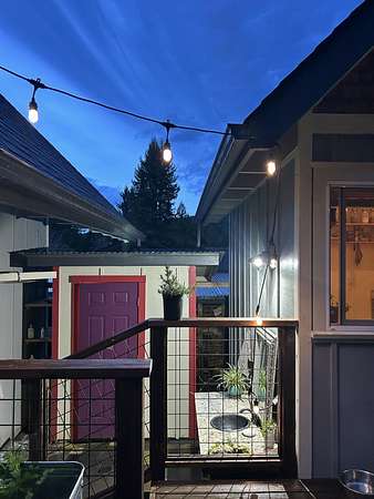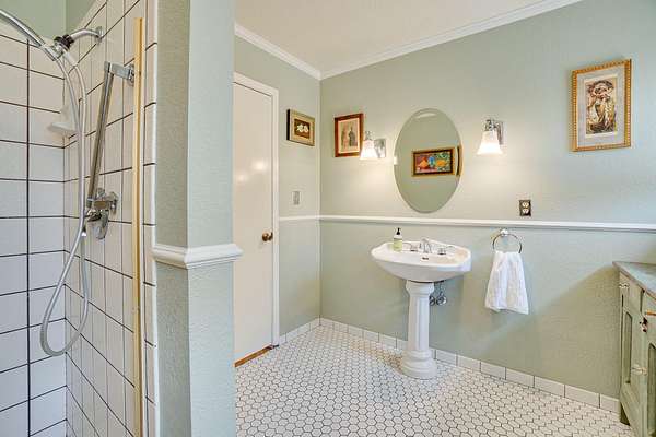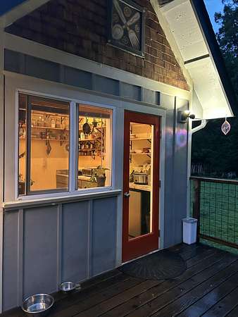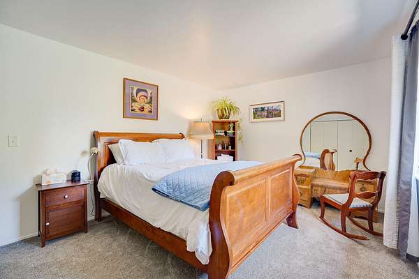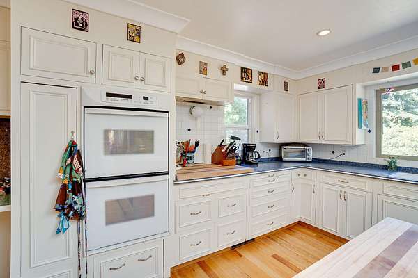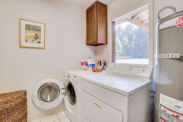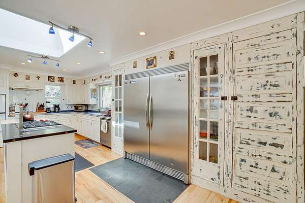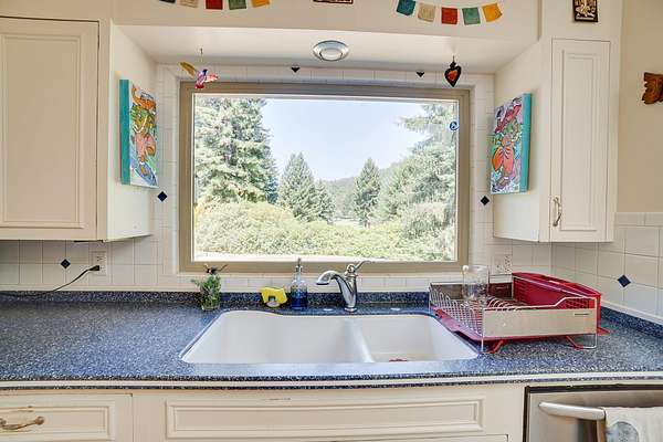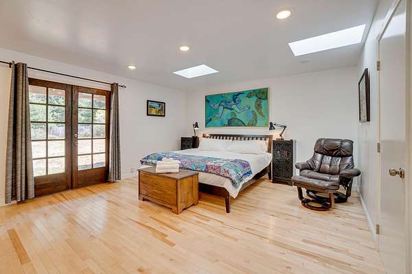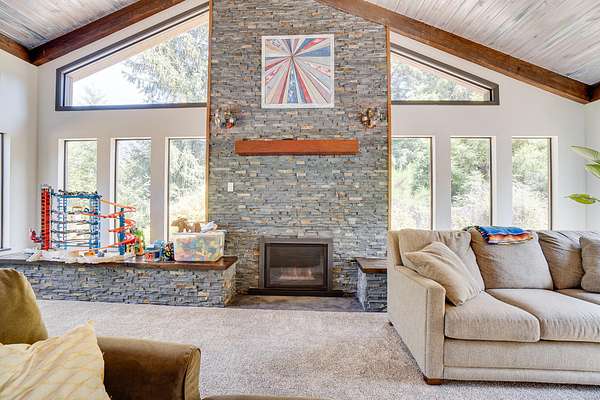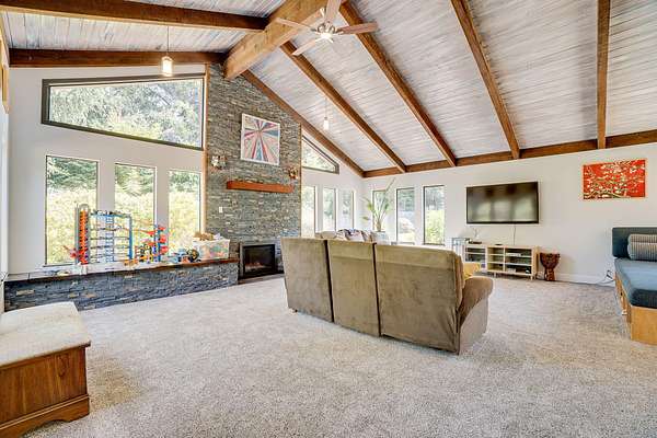 A beautiful classic ranch house with custom contemporary upgrades. This gorgeous home is situated in the middle of a 2.3 acre lot across from the 3rd hole at Baywood Golf and Country Club. Within walking distance to the clubhouse and pool you will find a great place to socialize and recreate. Enter into the great room with cathedral ceilings, a gas stove insert and windows on all sides, providing abundant natural light and a spacious yet cozy feel. Forced air heating throughout the house ensures comfort in each space. Next enter a combo living space with a wood stove insert, dining area and updated kitchen. The kitchen includes a breakfast bar, closeted pantry, and a Wolf island cooktop with downdraft ventilation maximizing counter space. Other premium appliances include Frigidaire dual ovens and refrigerator/freezer. A door opens conveniently to the back patio for outdoor access. Starting down the hall is the first updated bathroom with a pedestal sink and shower. Continuing down the hall, there is the indoor laundry room with patio access, and 3 large bedrooms. Making the turn you will find the second updated bathroom with a modern granite topped vanity and new tile around the shower tub combo and on the floor. Finally make your way into the luxurious primary suite. Inside find a large walk in closet, a fully remodeled bathroom with 2 sinks on an oversized vanity, walk in shower and a deep soaking tub perfect for relaxation. Your feet will love staying warm on the radiant heated floors as you ready yourself for every occasion. French doors leading out to the backyard and patio round out this elegant suite. In addition to the wonderful living space you will find plenty of room for automobiles, boats, ATV's or motor bikes in the oversized 2 car garage and attached carport. A separate RV parking area with 50 amp service can be found at the back of the property. External storage sheds provide extra room for tools, recreation equipment or whatever else needs protection from the elements. In the back are two large water tanks for storing water from your private well as well as covered wood sheds. Mounted on the roof is a 7 KW solar system with the ability to add more panels to offset charges on your energy bill and skylights have been modernized to Velux models. Finally, near the back of the lot, are two casitas joined by a deck that together make an ADU. One casita serves as the kitchen space while the other serves as the sleeping and living space. Large pasture areas in the front or back could serve for 4H purposes or horse ownership. This property truly has it all in a highly sought after location. Don't let this rare opportunity to own such a unique property pass by.
